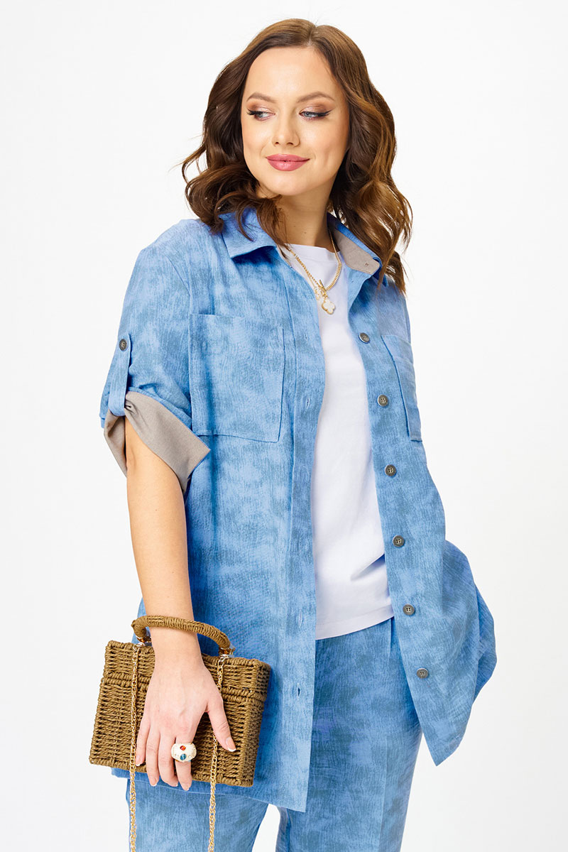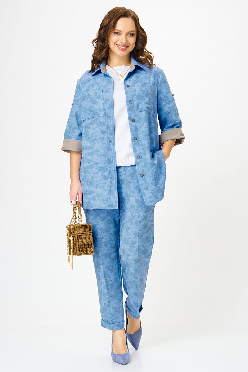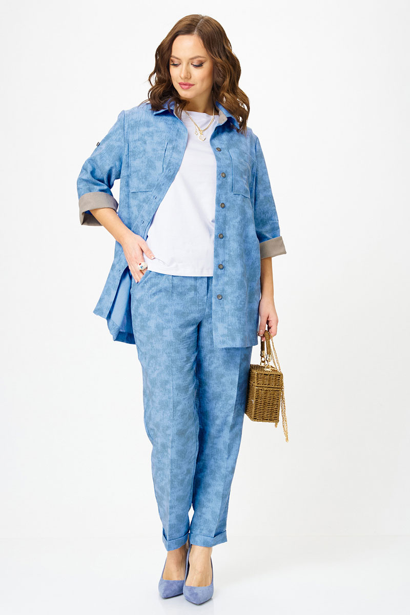 Комплект женский 3-предметный, состоящий из блузы, брюк и футболки. Блуза и брюки выполнены из поливискозы.