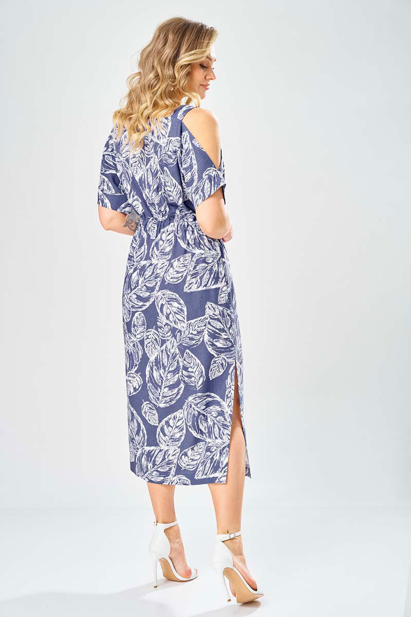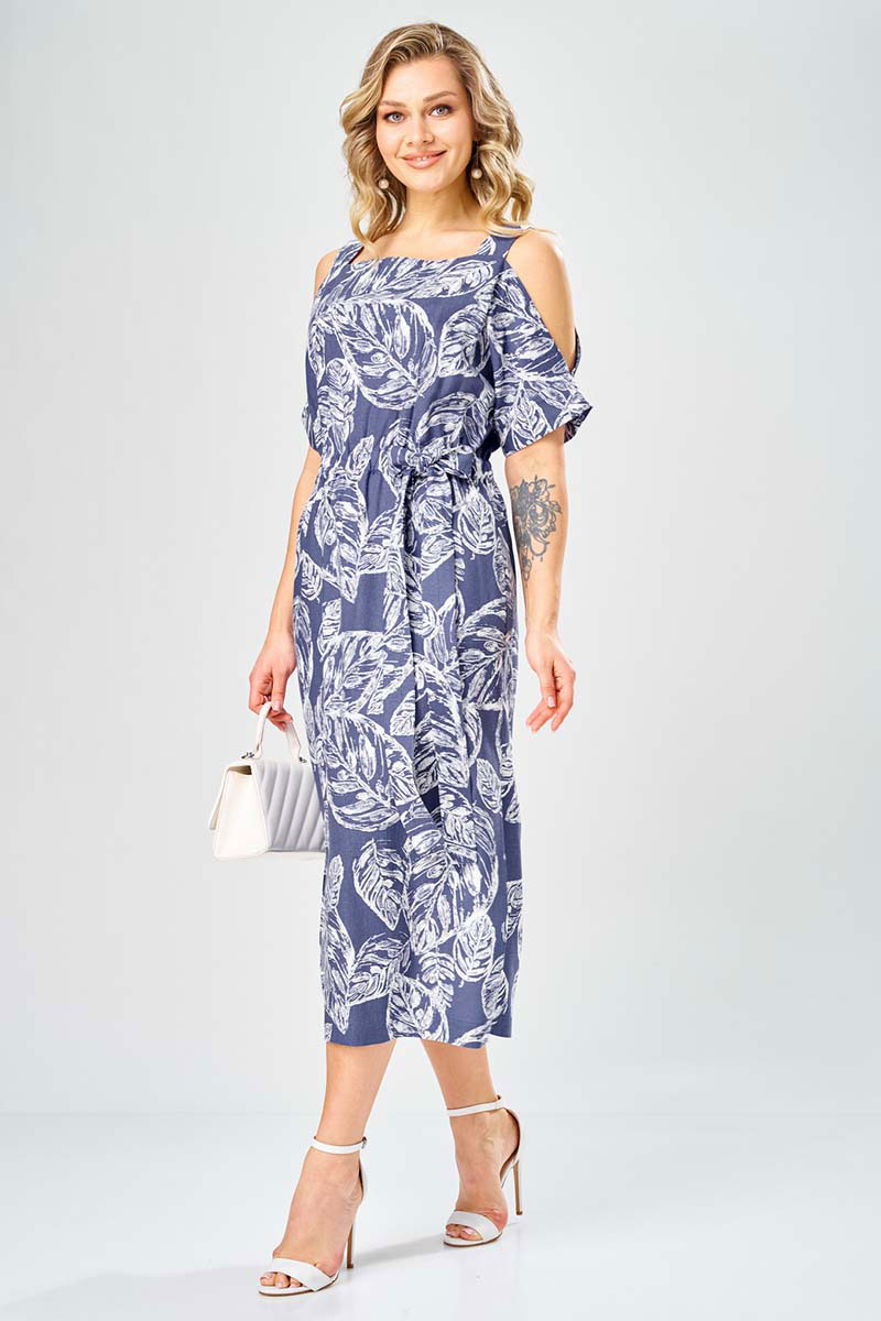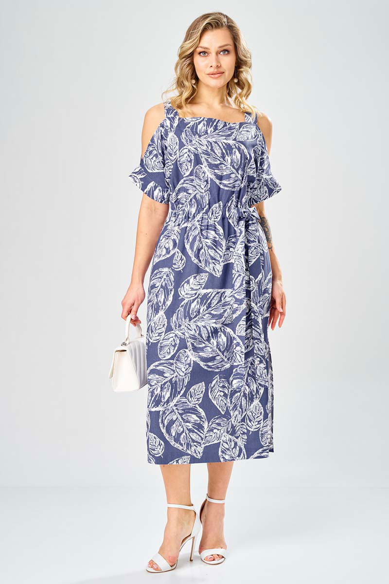 Сарафан женский прямого силуэта на широких бретелях. Выполнен из хлопчатобумажной плательной ткани с растительным принтом. Сарафан с открытой линией плеч и цельнокроенным рукавом до