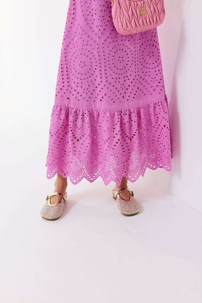 А-силуэта с притачкой оборкой по низу платья. Юбка платья на хлопковой подкладке.