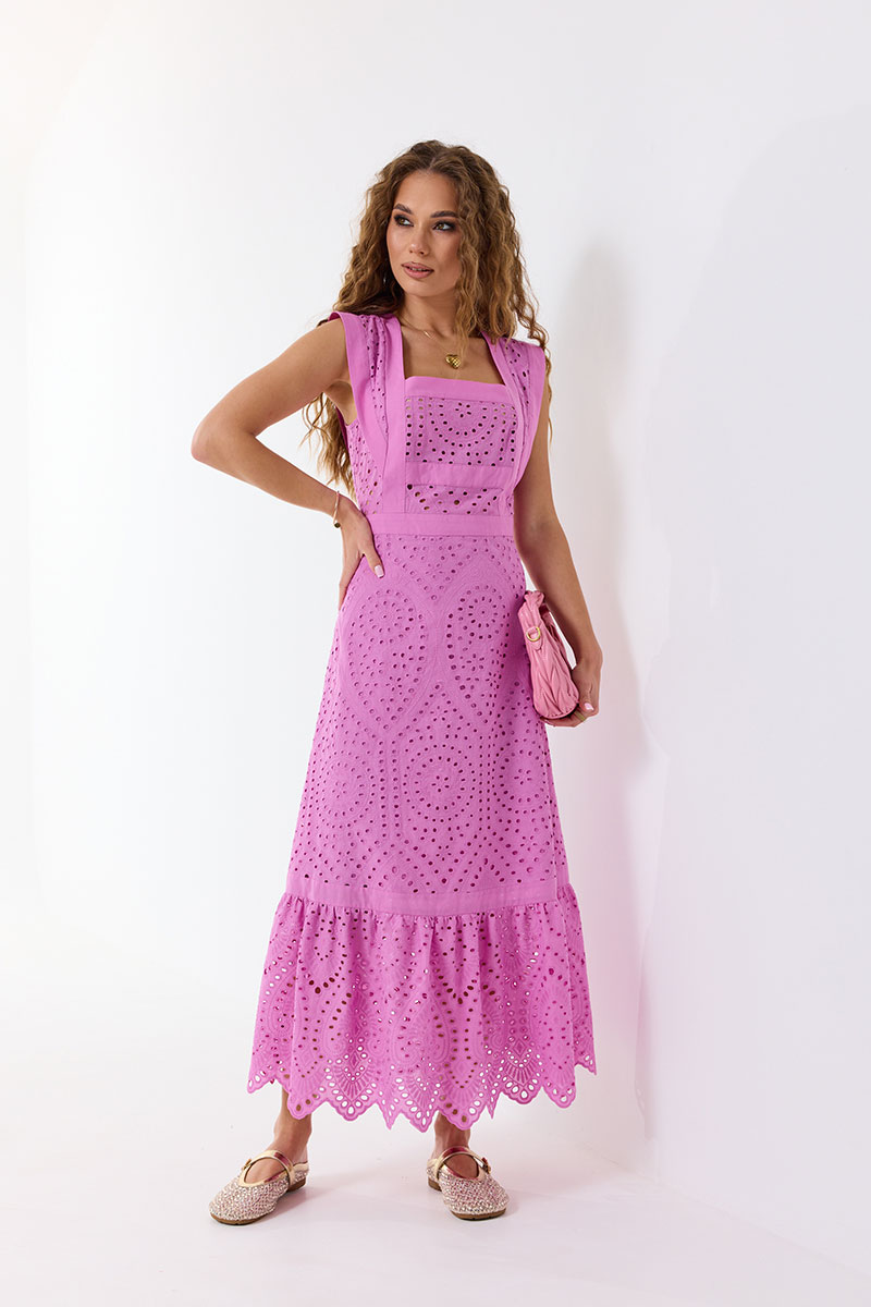 Платье из хлопковой ткани «шитье», полуприлегающий силуэт без рукавов. Отрезная линия талии. Вырез горловины квадратной формы. Застежка по спинке на потайную молнию.