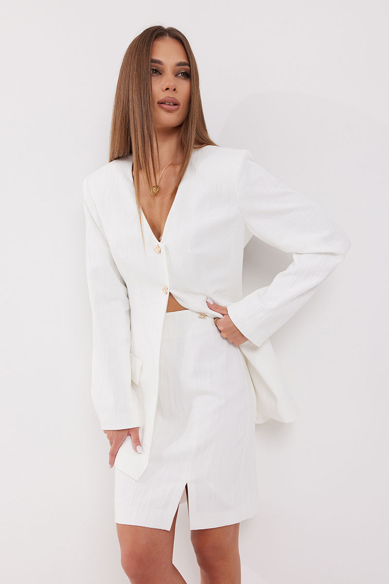 Юбка прямого силуэта из ткани с эффектом крэш. Длина до колена. По переду разрез. Сзади застёжка на потайную молнию. Юбка на подкладке.