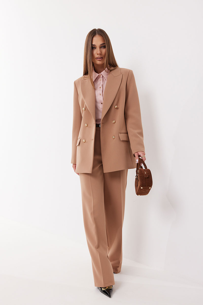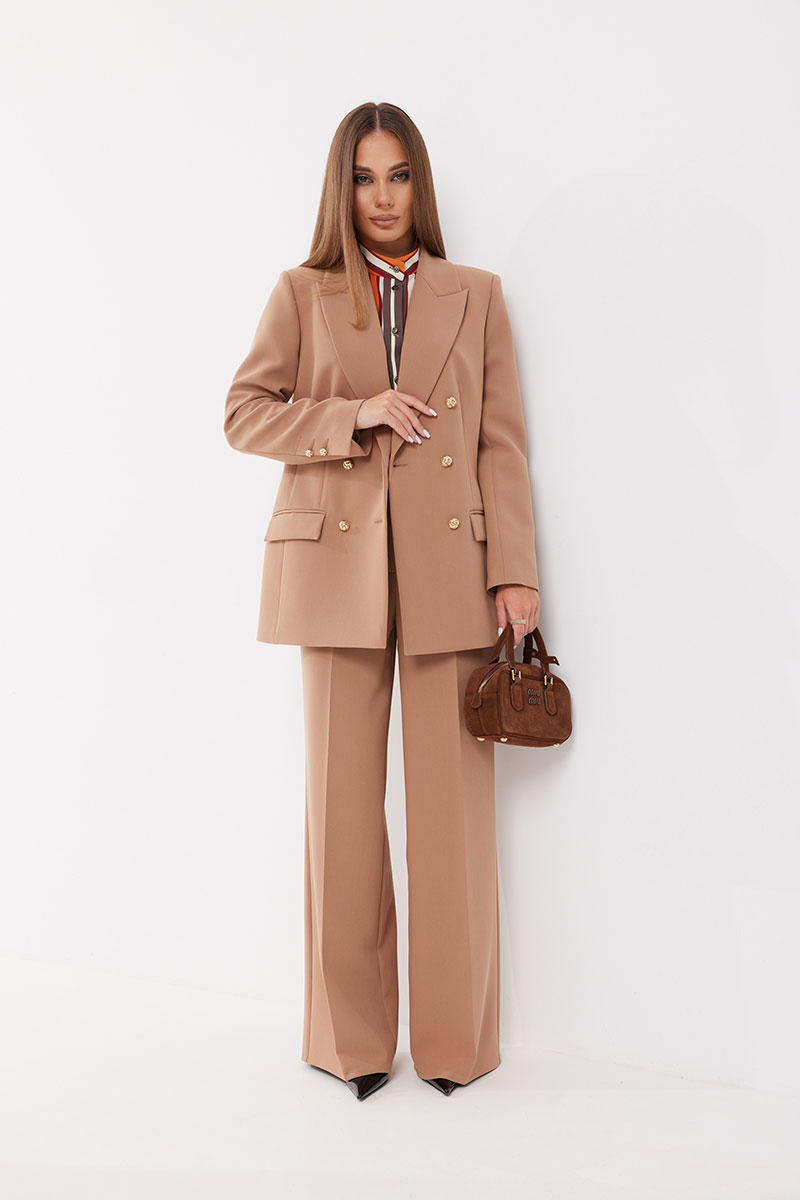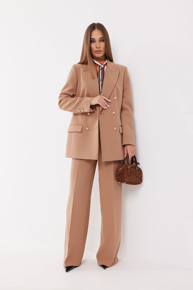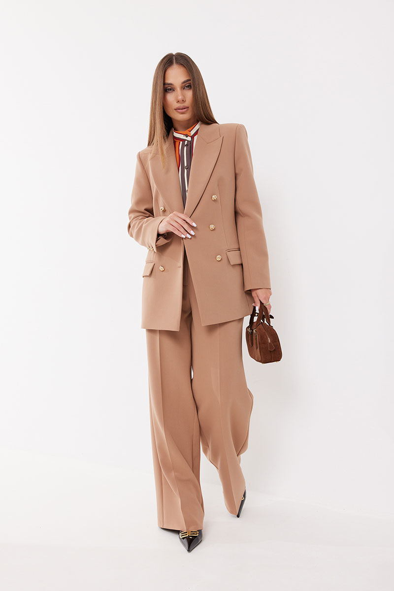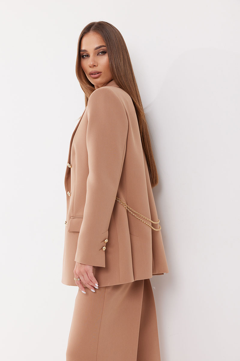 Жакет женский, двубортный, полуприлегающего силуэта, на подкладке. Застежка на пели и