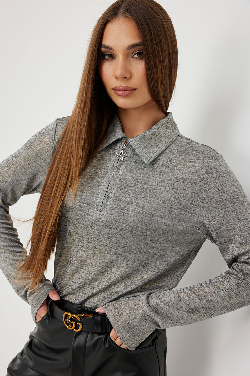 Джемпер женский трикотажный с воротником и молнией по переду. Рукав втачной длинный. Полуприлегающий силуэт придает стильный образ.