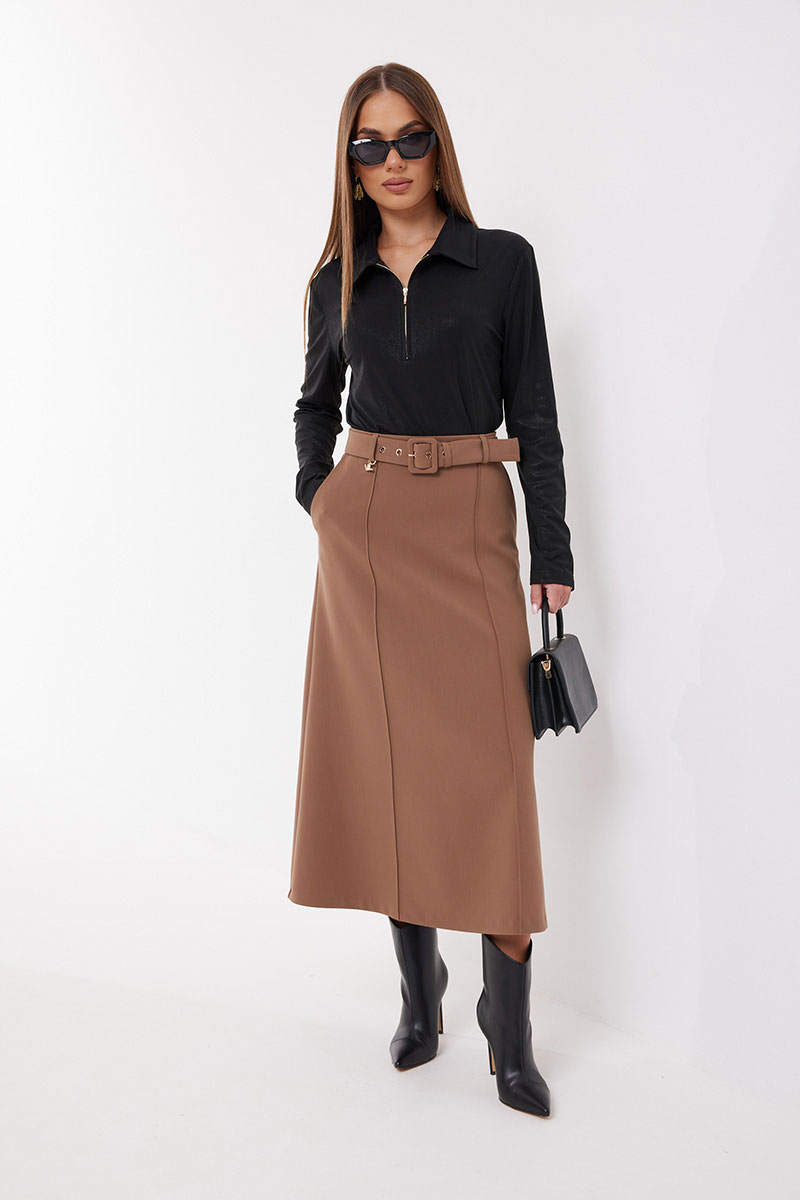 Джемпер женский трикотажный с воротником и молнией по переду. Рукав втачной длинный. Полуприлегающий силуэт придает стильный образ.
