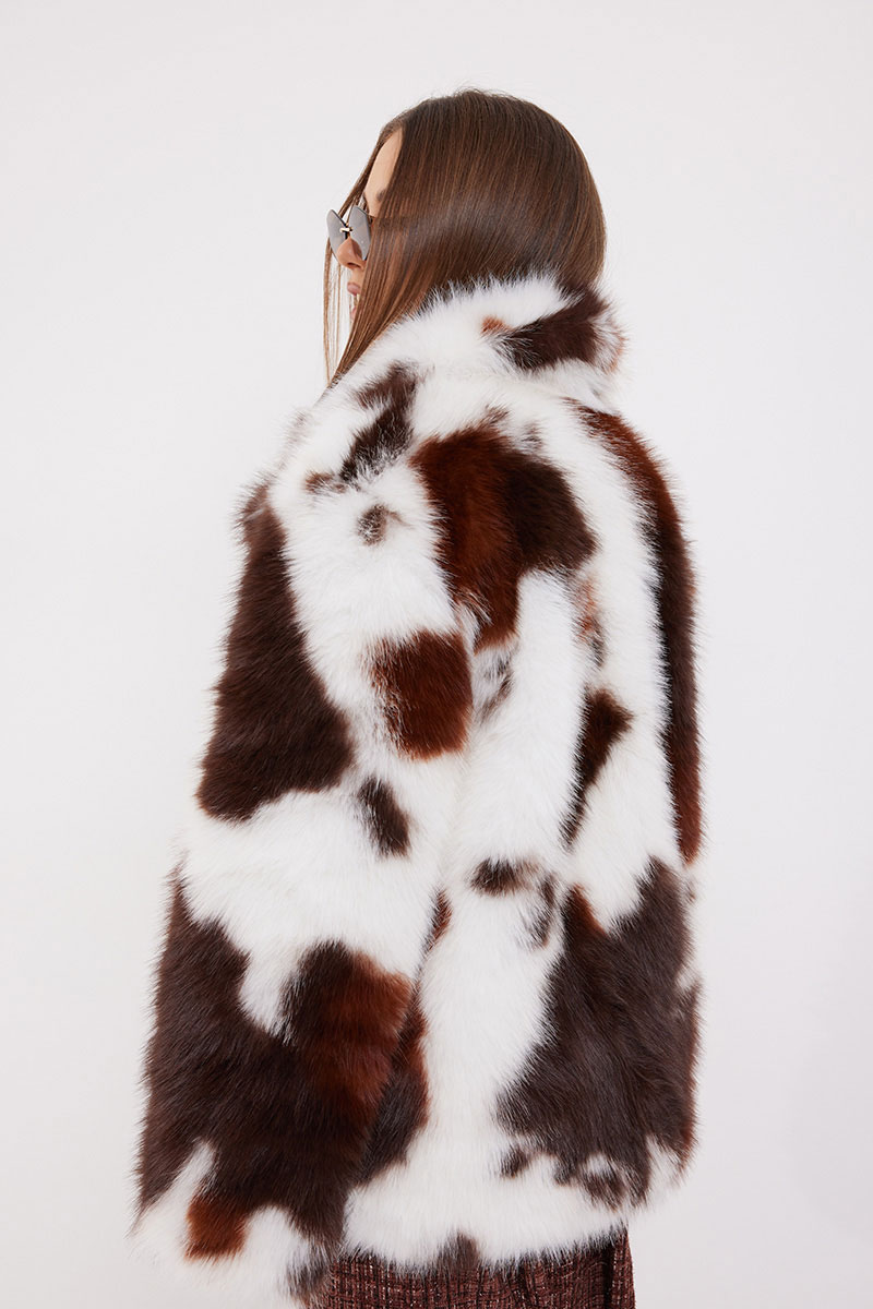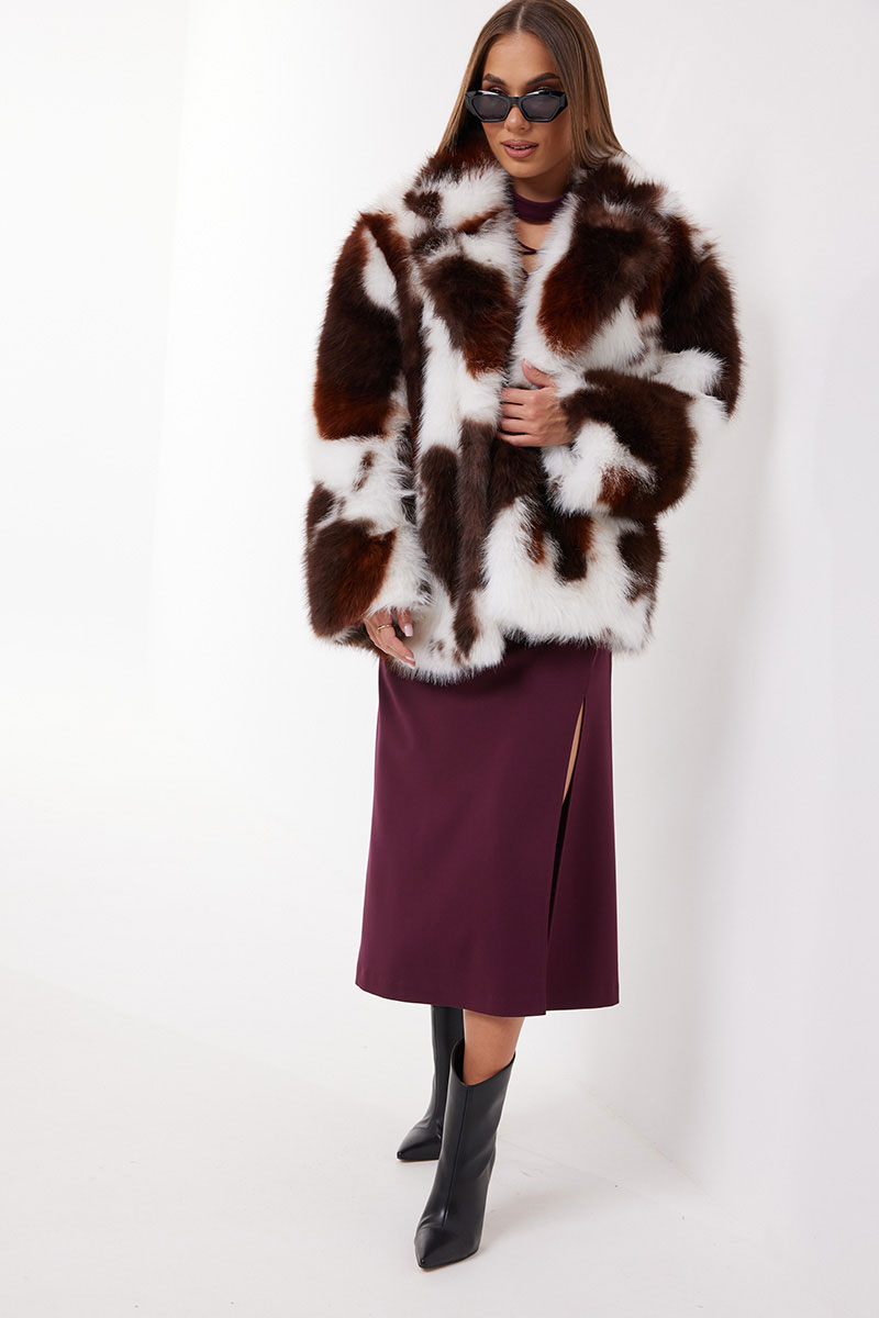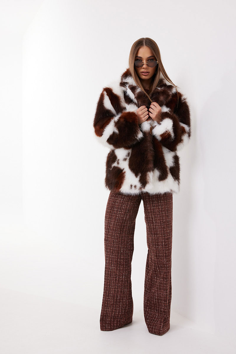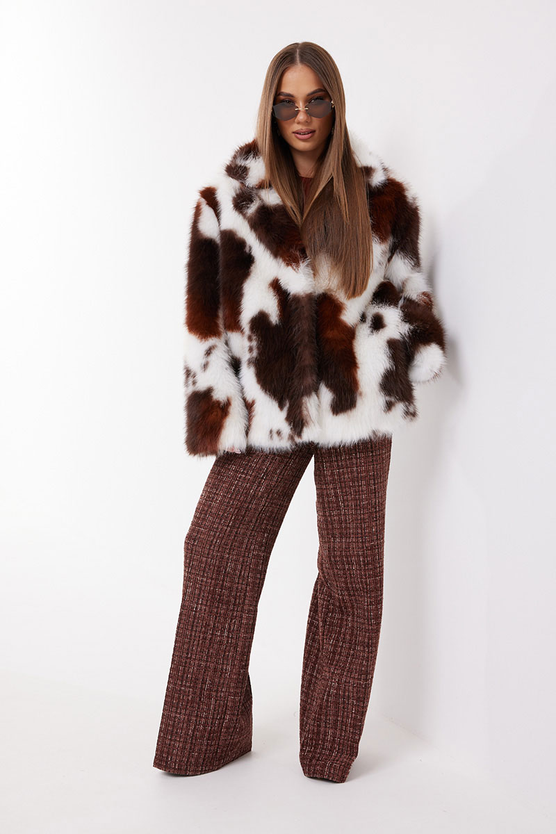 Пальто укороченное из ворсовой ткани. Застёжка на крючки. Воротник пиджачного типа. Рукав прямой. Карман в боковом шве. Пальто на подкладке.