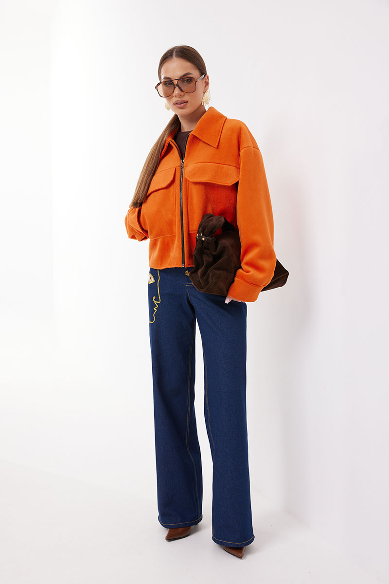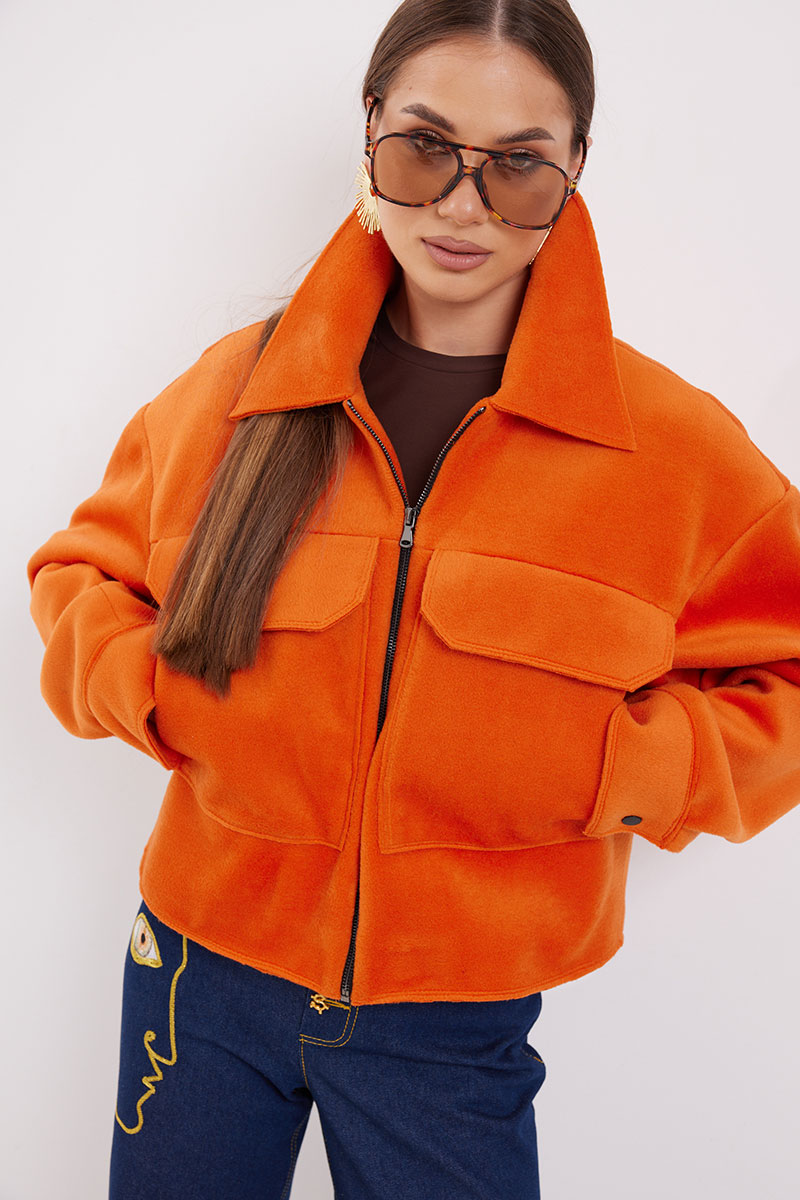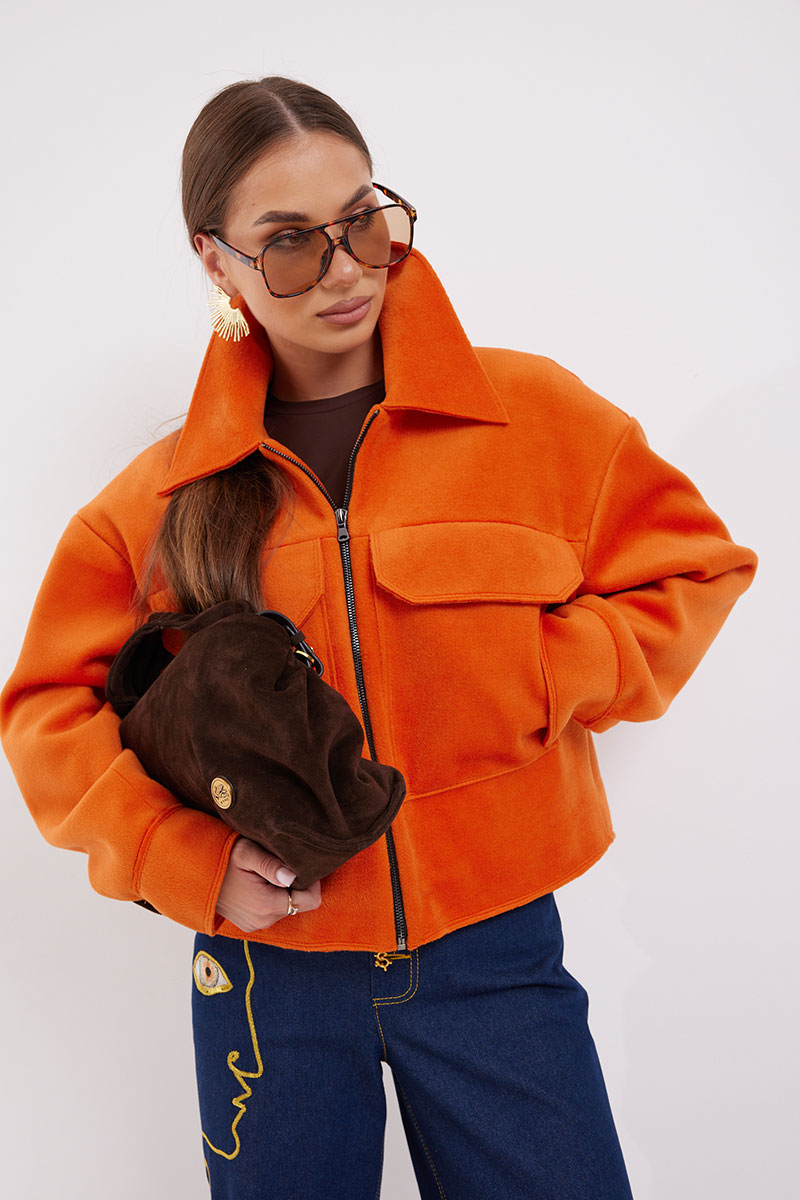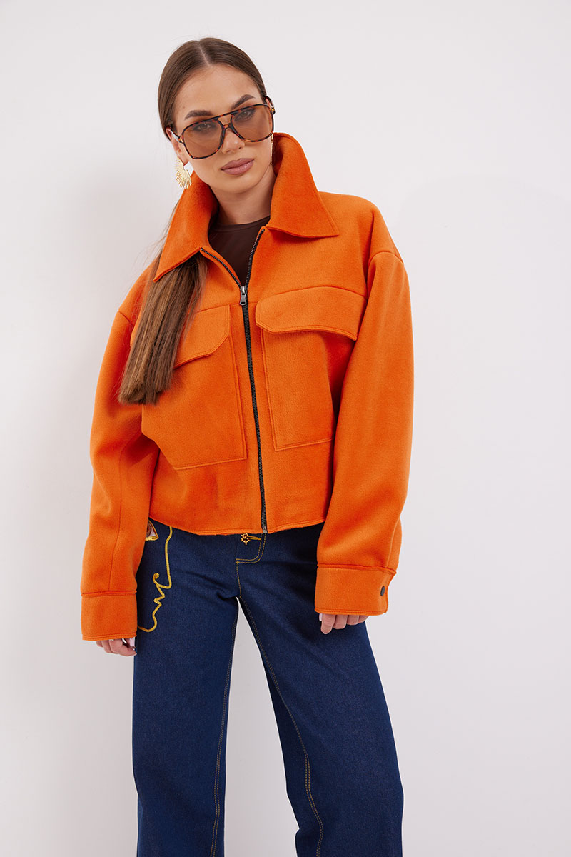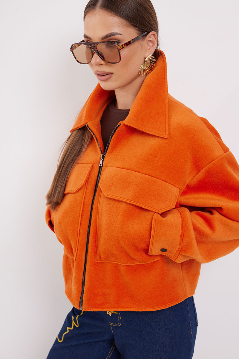 Жакет укороченный из пальтовой ткани. Застёжка на молнию. Воротник отложной. Рукав прямой с