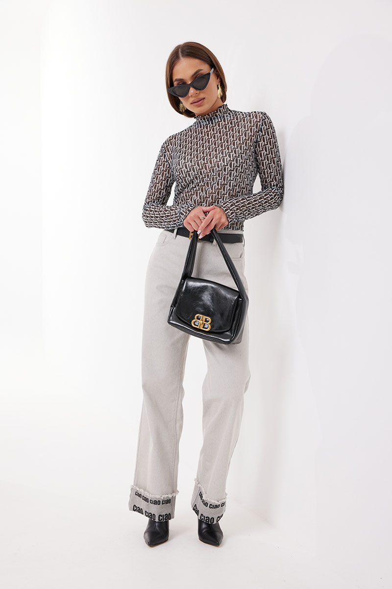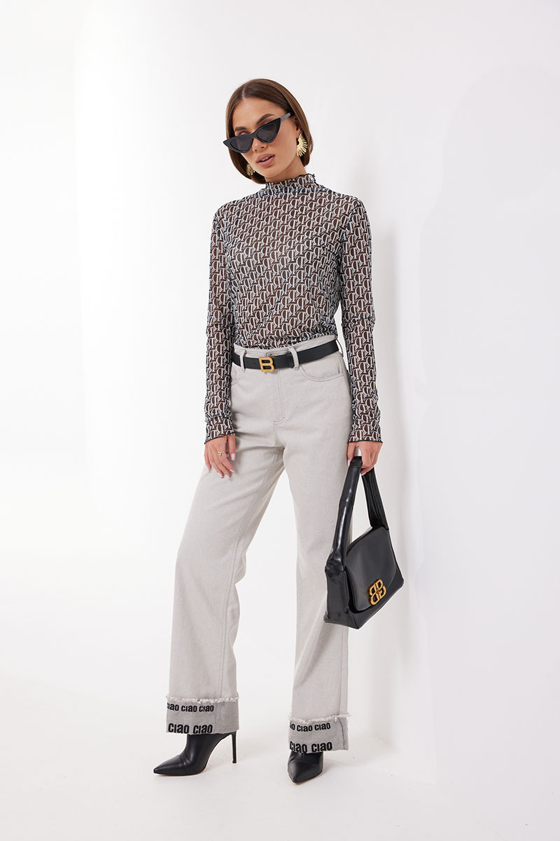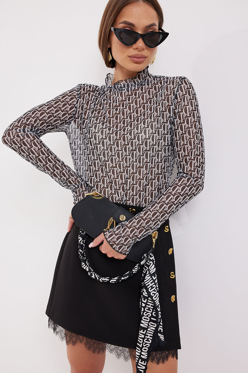Джемпер прилегающего силуэта из трикотажного полотна «сетка». Рукав длинный. Горловина с цельнокроенной стойкой.