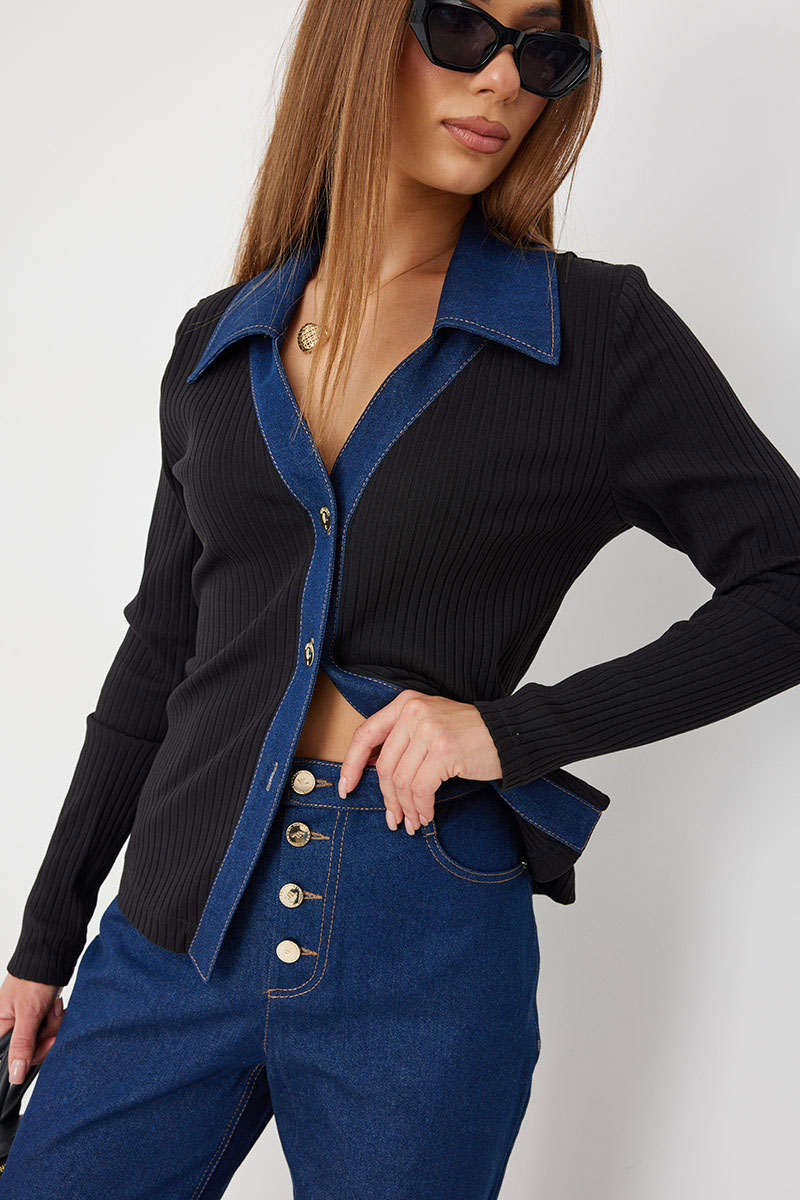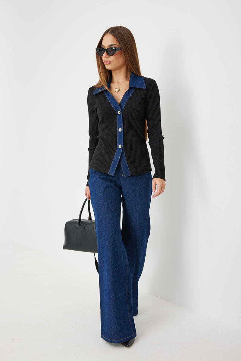 планка с воротником из отделочной ткани. Длинные рукава и удобная застежка на петли и пуговицы обеспечивает максимальный комфорт. Джемпер поможет создать неповторимые образы