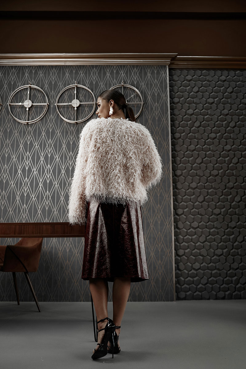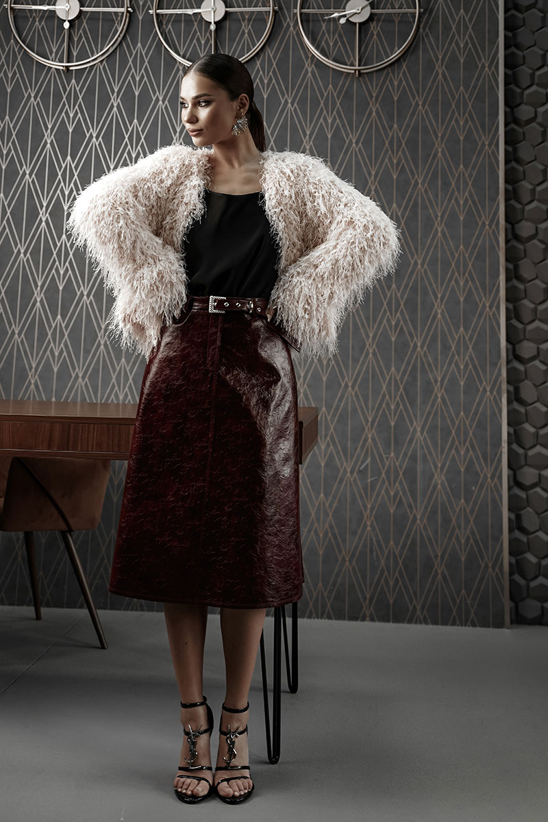 Жакет женский, из костюмно-плательной ткани с эффектом «травка», укороченный, прямого силуэта с центральной застежкой на три кнопки. Рукава длинные, слегка расширенные книзу, жакет на подкладке. Жакет прекрасно дополнит любой вечерний образ.