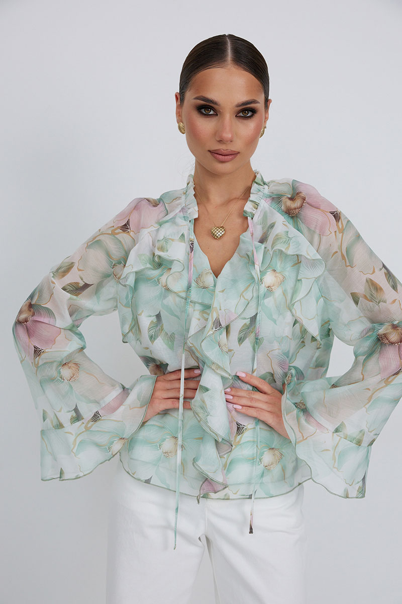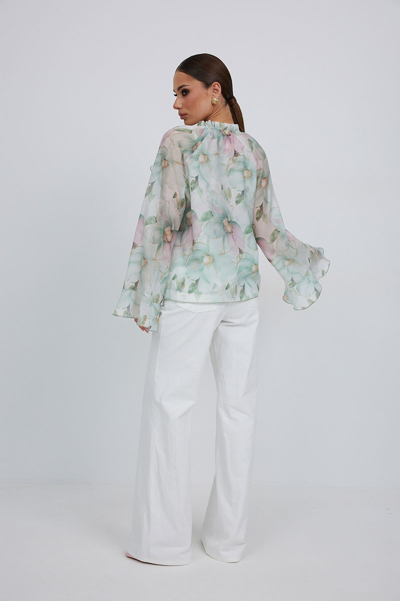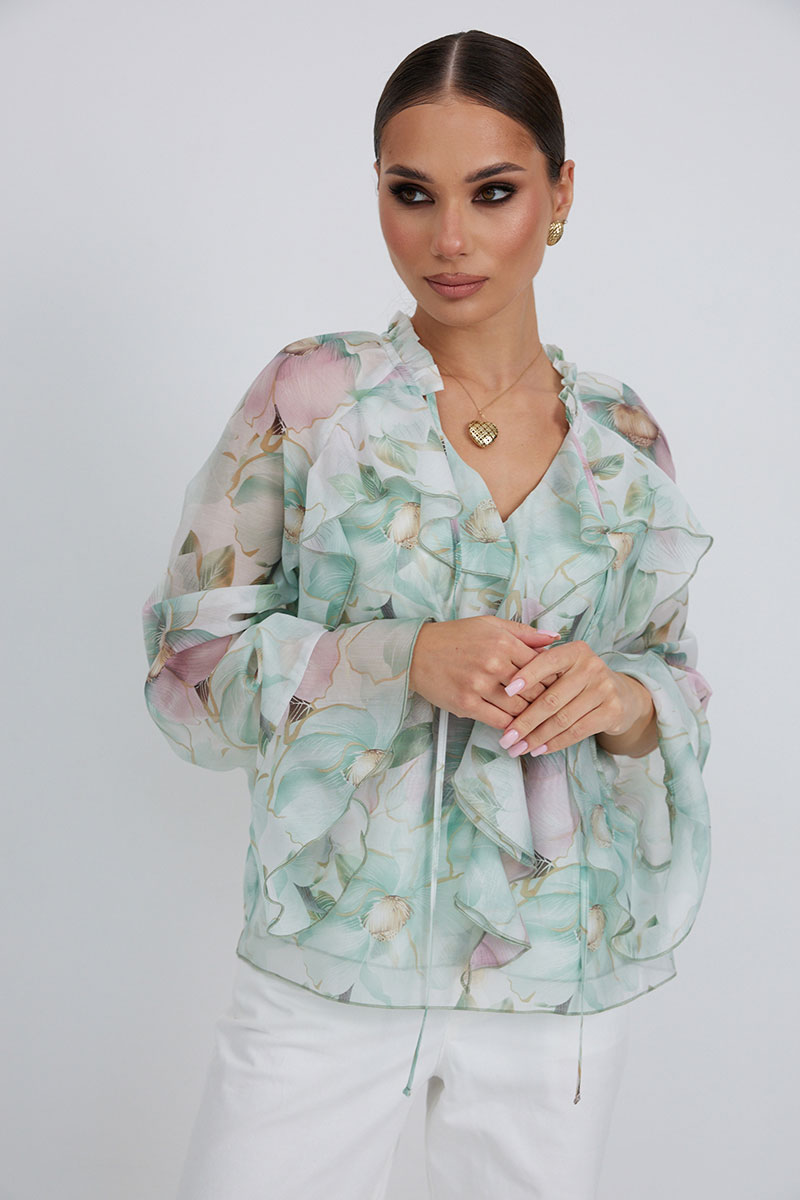 Блузка прямого силуэта из полупрозрачной ткани «органза». Рукав реглан расширенный,