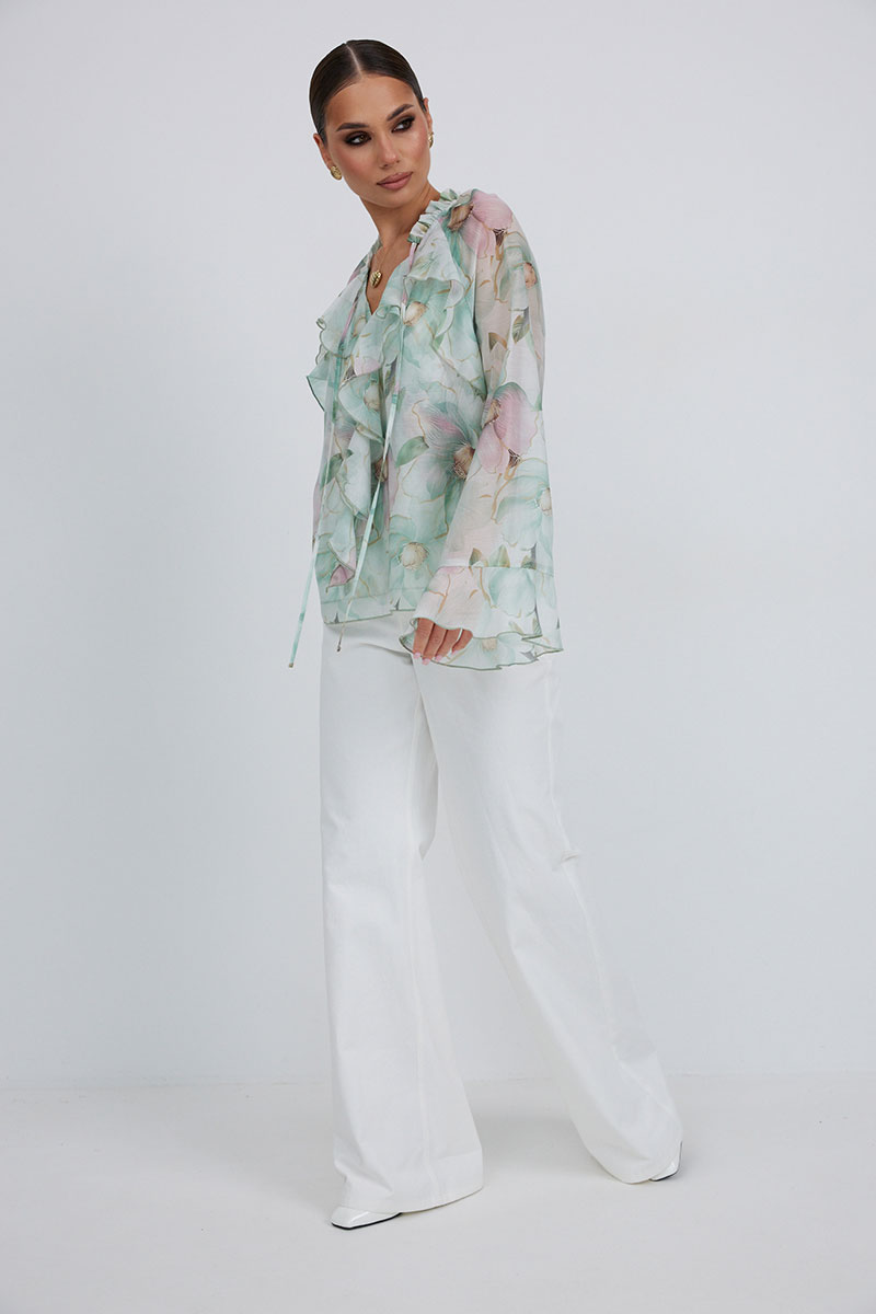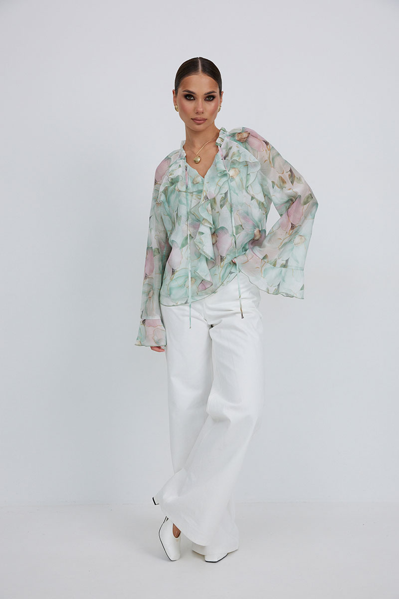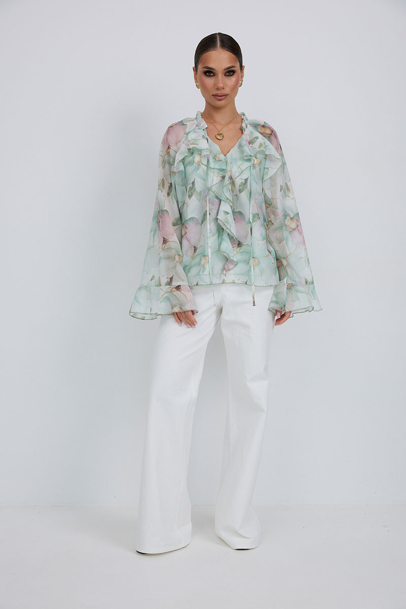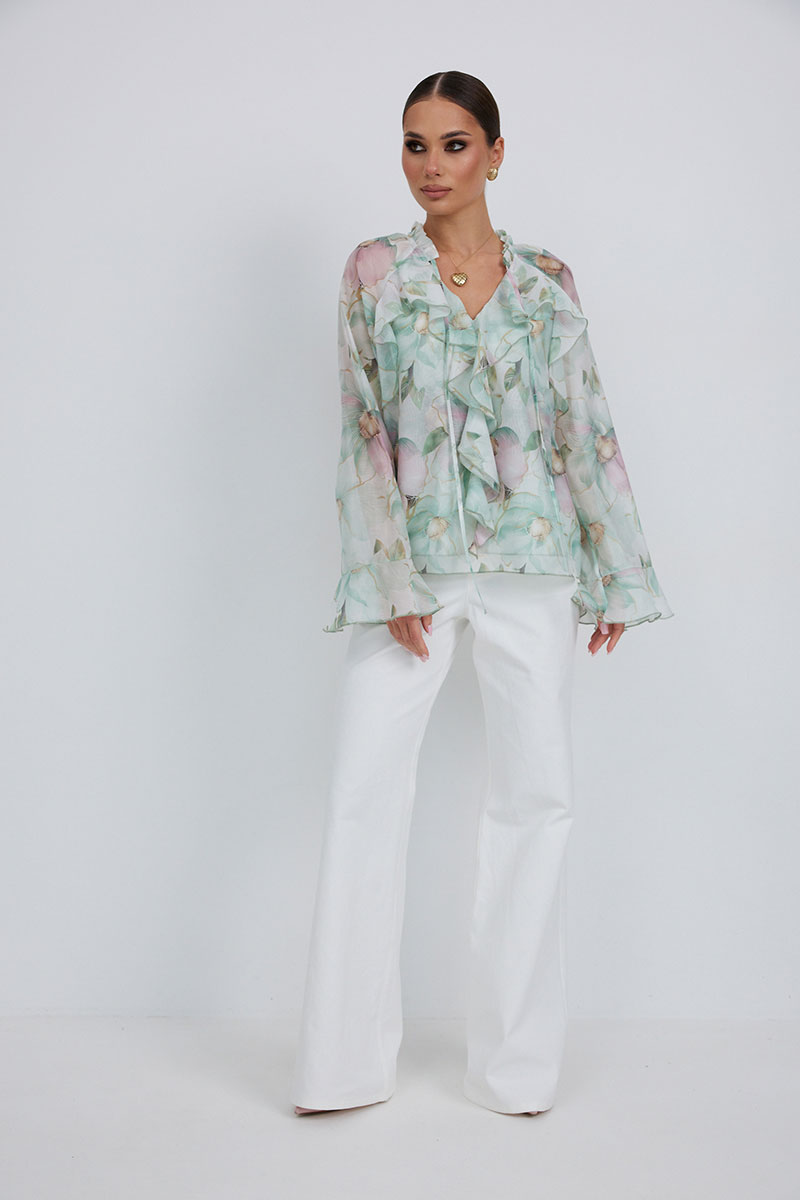 Блузка прямого силуэта из полупрозрачной ткани «органза». Рукав реглан расширенный,