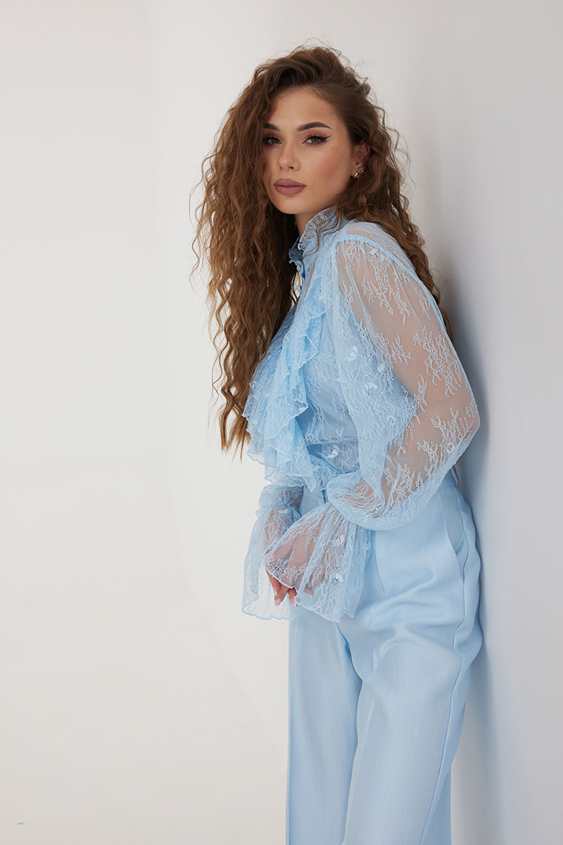 Брюки из костюмно-плательной ткани, прямые со стрелками, полной длины. Средняя посадка, пояс притачной, застежка спереди на молнию и пуговицу. По переду боковые карманы.