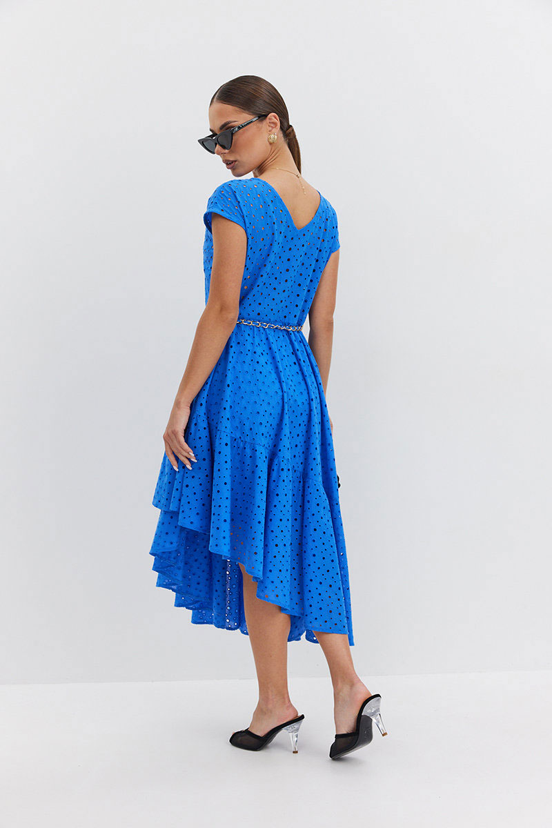 молнию в боковом шве. По талии шлевки, в которые протянута декоративная цепочка-пояс.