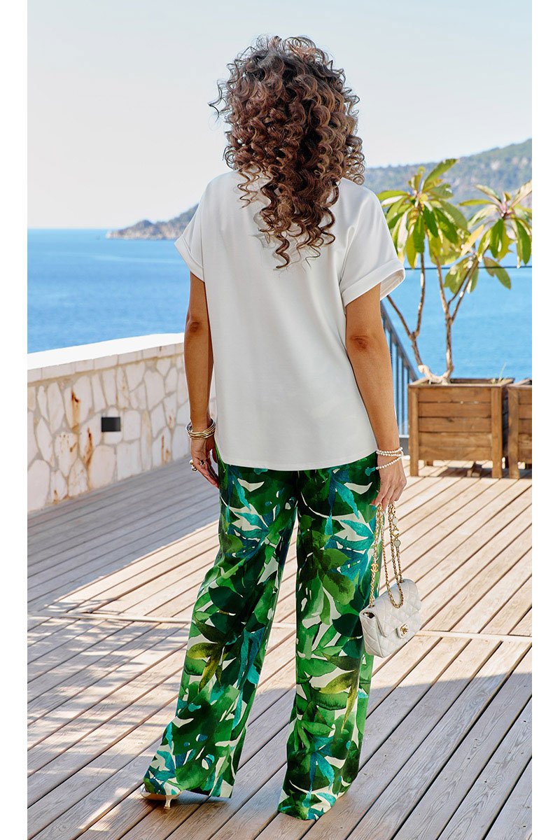 Летний комплект, состоящий из блузки и прямых брюк в ярком дизайне олицетворяет собой идеальный летний наряд. Этот летний комплект становится не просто одеждой, а полноценным
