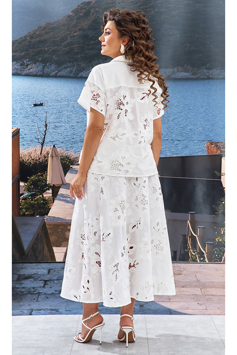 Этот летний костюм становится настоящим обаянием, который притягивает взгляды окружающих, придавая каждой женщине уверенность и шарм. Костюм идеально подходит как для прогулок по