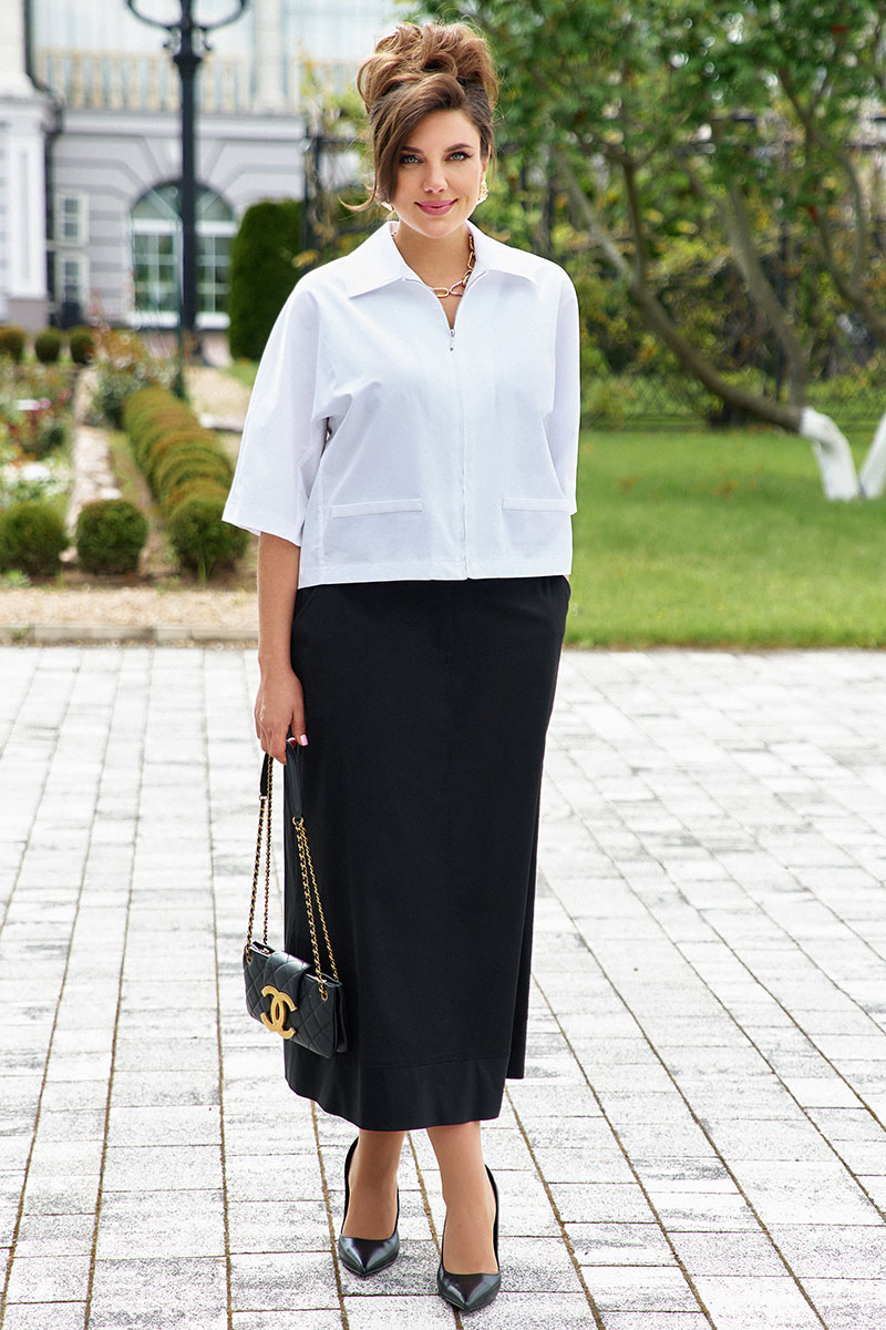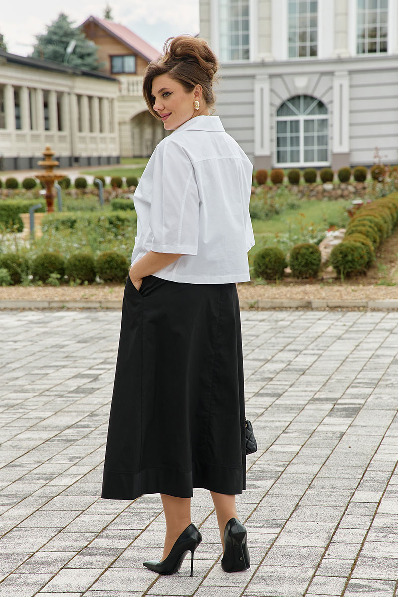 Этот комплект состоит из безупречной белой блузки и классической черной юбки А-силуэта.