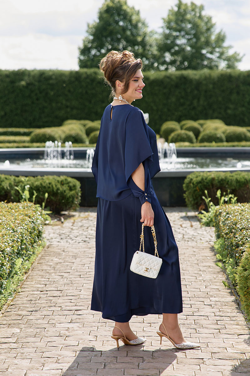 Данный костюм отлично подходит для торжественных мероприятий, свиданий, работы в офисе, если дополнить его соответствующими аксессуарами и обувью.
