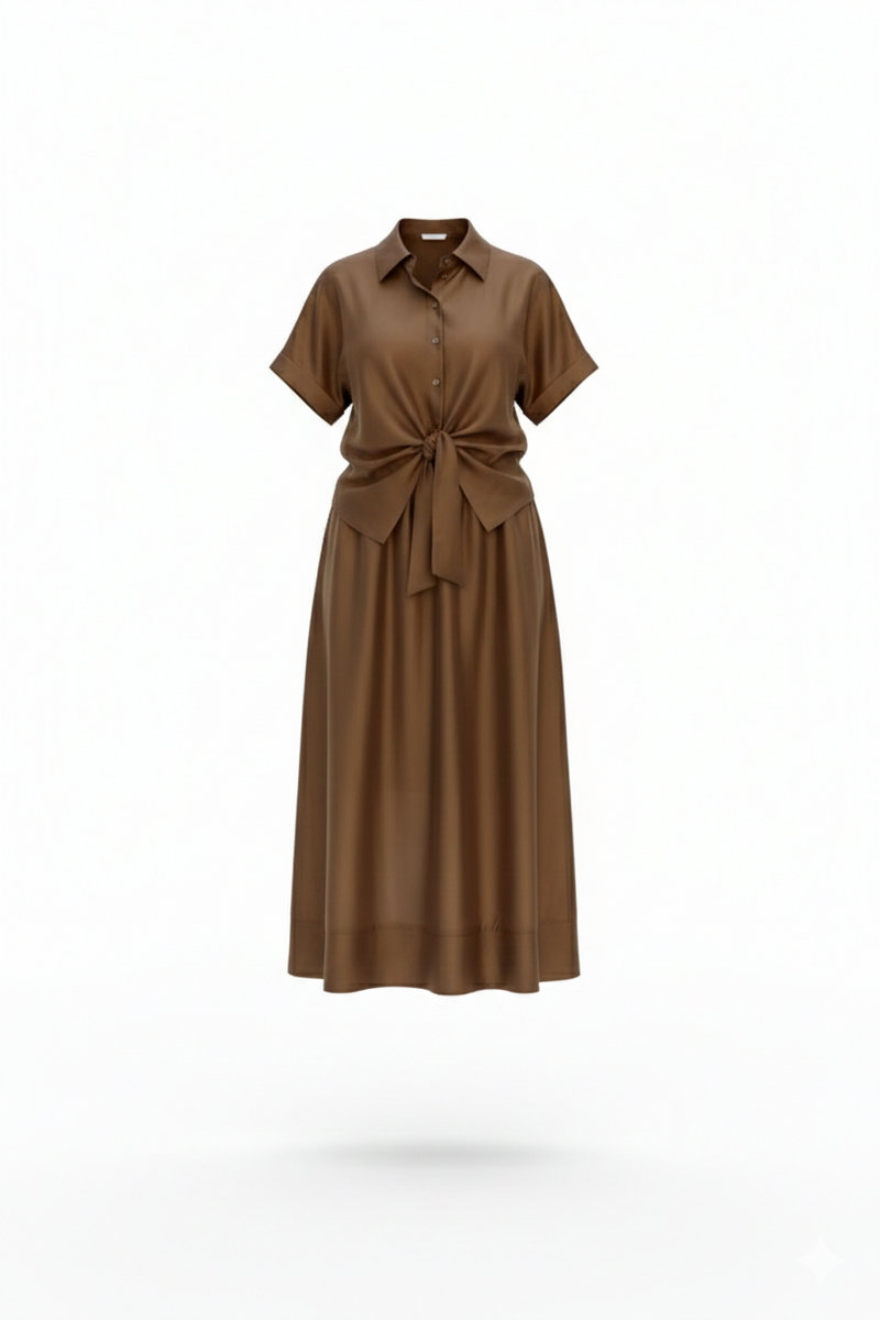 Блузка словно соткана из жидкого шоколада, застывшего в момент своего самого изысканного перелива. Это не просто одежда — это тонкая игра света и тени, где полупрозрачность становится не недостатком, а главной художественной задумкой. Шоколадный цвет здесь становится не просто оттенком, а полноценным персонажем этой визуальной истории — теплым, глубоким, с легкой горчинкой изысканности. А полупрозрачная, летящая ткань создаёт иллюзию невесомости и лёгкой таинственности. Блузка с центральной застёжкой на декоративные петли-пуговицы по планке, с воротником рубашечного типа. Её свободный крой обволакивает фигуру, не стесняя, а подчёркивая её естественные линии. Рукав в блузке цельнокроеный с притачной манжетой по низу. По переду блузки цельнокроеные отрезные детали завязывающиеся на бант. Спинка с отрезной кокеткой. В боковых швах блузки разрезы. Полупрозрачная шоколадная блузка — универсальный элемент, который работает в любом стиле. Ключ к успешному образу — баланс: если блузка воздушная и чувственная, низ должен быть более структурированным, и наоборот. Экспериментируйте с текстурами, не бойтесь контрастов и помните — эта вещь создана быть центром внимания в любом ансамбле.
