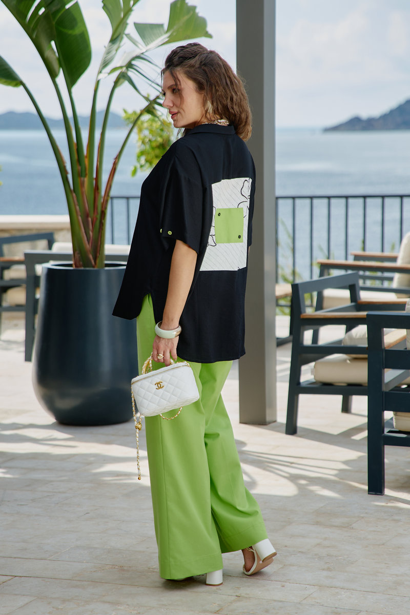 Салатовые брюки — это не просто модный тренд, а инвестиция в летнее настроение. Их прямой крой делает их универсальными, а яркий цвет — запоминающимися. Ключ к успешной стилизации — баланс: позвольте брюкам быть главным акцентом, а всё остальное пусть будет их достойной поддержкой. Помните, лето — время для экспериментов, и эти брюки станут идеальным полем для цветовых игр и стилистических открытий. Брюки прямого силуэта с притачным поясом на эластичной тесьме-резинке, которая обеспечивает максимально удобную посадку на любой тип фигуры. По переду брюк прорезные карманы.