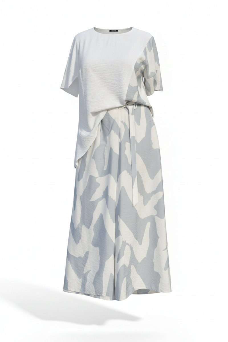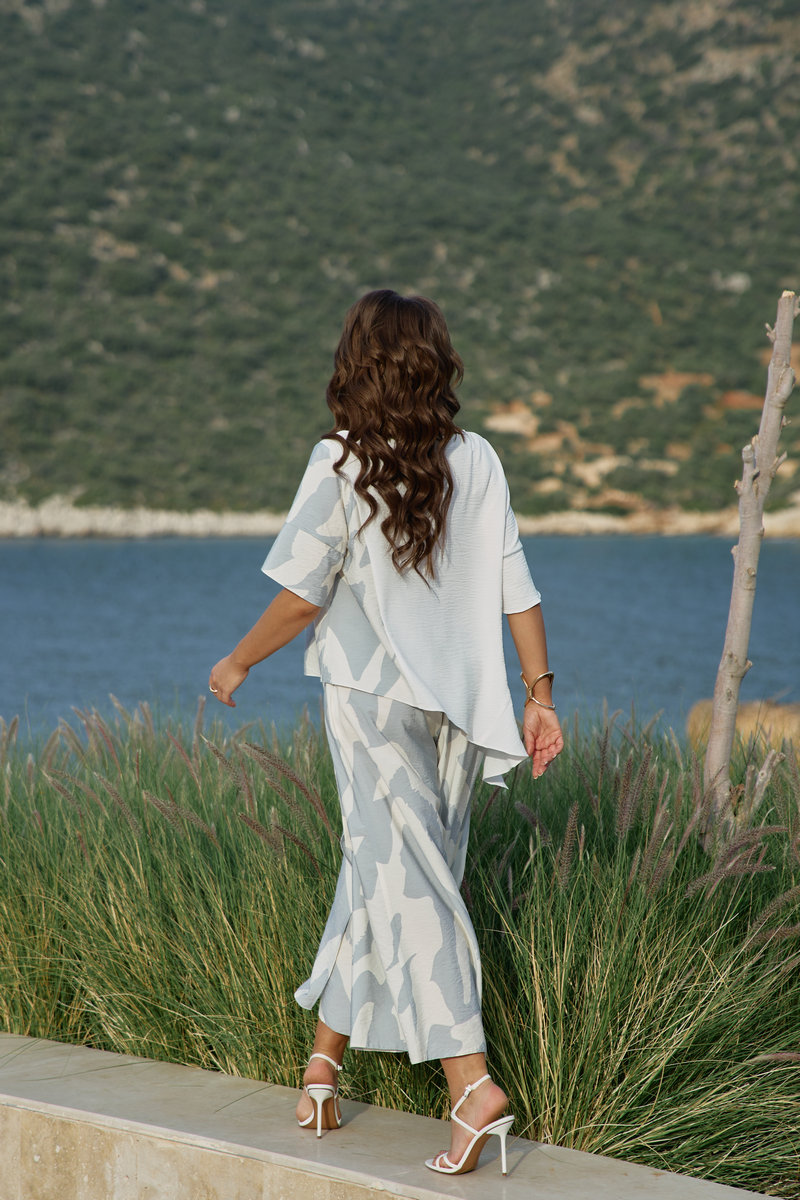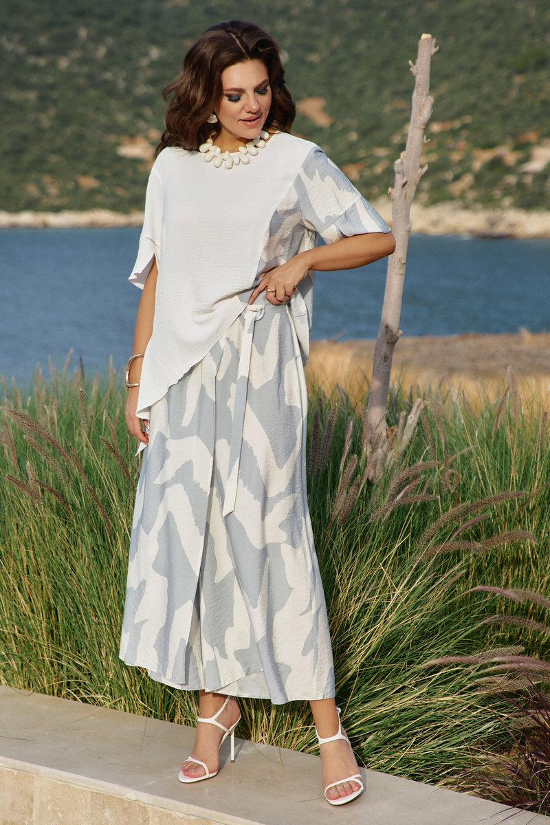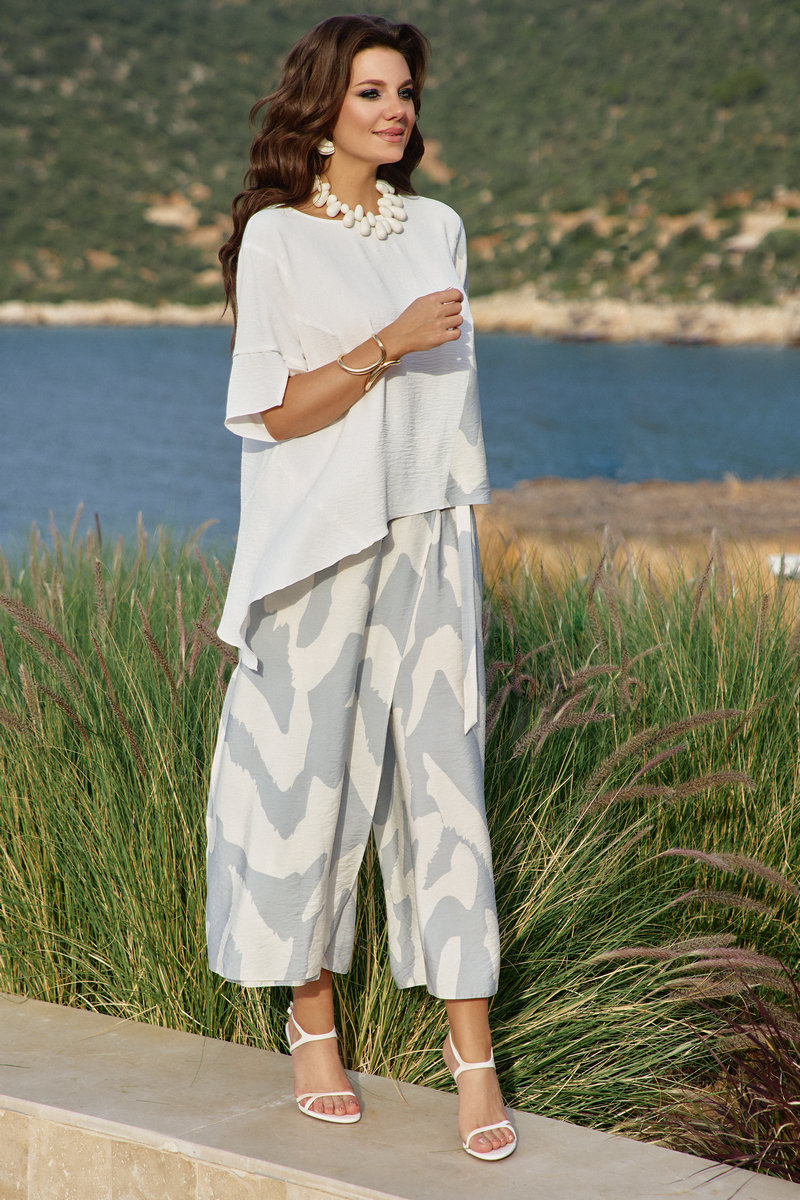 Летний комплект представляет собой гармоничное сочетание стиля и комфорта. В таком комплекте каждая деталь безупречно дополняет другую, создавая образ, который одновременно привлекает внимание и дарит ощущение комфорта. Этот наряд идеально подойдет как для прогулок по городу, так и для более камерных мероприятий, позволяя женщине чувствовать себя уверенно и очаровательно в летнее время.