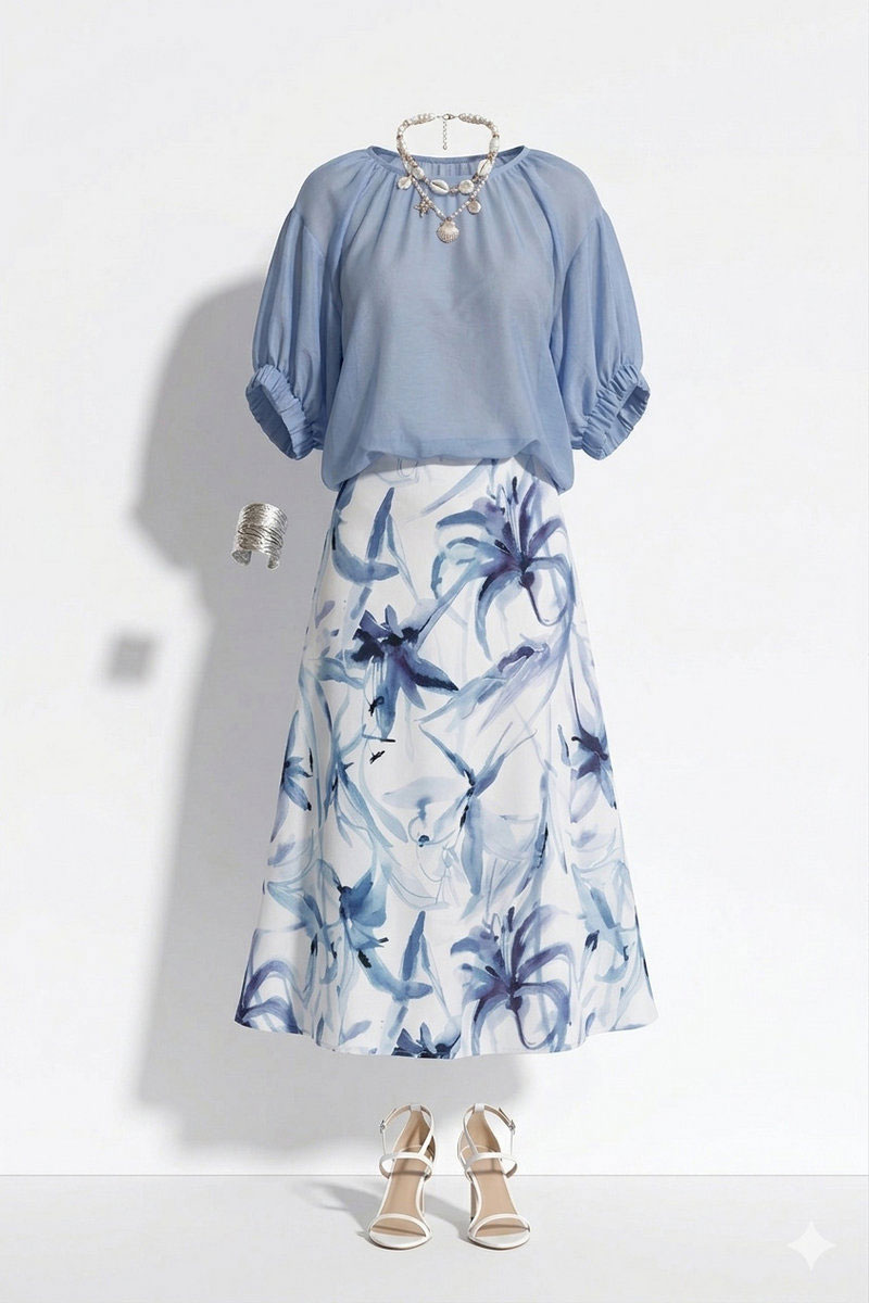Блузка для повседневной носки и торжественных случаев в романтичном стиле в летний период небольшого объема. По геометрическому подобию напоминает трапецию, пластическая форма мягкая, плавная. Блуза из легкой, дышащей, летящей ткани свободная, немного расширена к низу. Перед и спинка двойные. Горловина неглубокая, оформлена мягкой плавной линией. Плечевой пояс наклонный, естественной ширины. Линия проймы углублена, рукав однослойный большого объема до локтя собран на притачной манжет, присборенный широкой резинкой. В среднем шве спинки у горловины оформлена застежка на петельку и пуговицу в цвет ткани. Линия низа по спинке немного длиннее переда. Крой придает модели современный вид и молодит обладателя. Эта модель создана для вашего гардероба, ведь она подходит для повседневных образов, легко сочетается с другими предметами гардероба, идеально сидит на фигуре благодаря продуманному крою и великолепному исполнению. Блуза задает современный образ, подчеркивает фигуру, выгодно выделяет, делает вас заметнее и ярче. Она выполнена из современных и качественных материалов в тренде сезона с акцентом на фигуру. Универсальная вещь на каждый день и идеальный вариант для капсульного гардероба, так же прекрасно будет выглядеть на торжестве, создает женственный и элегантный образ.