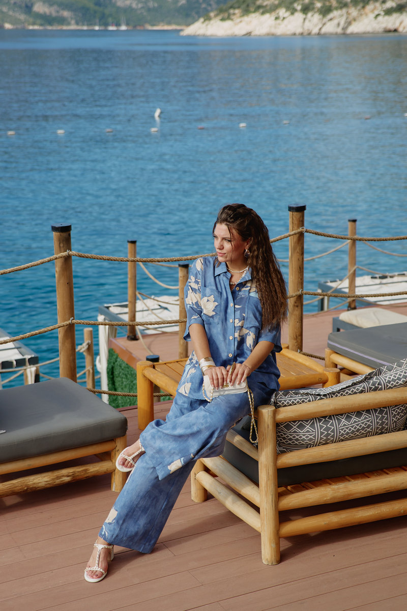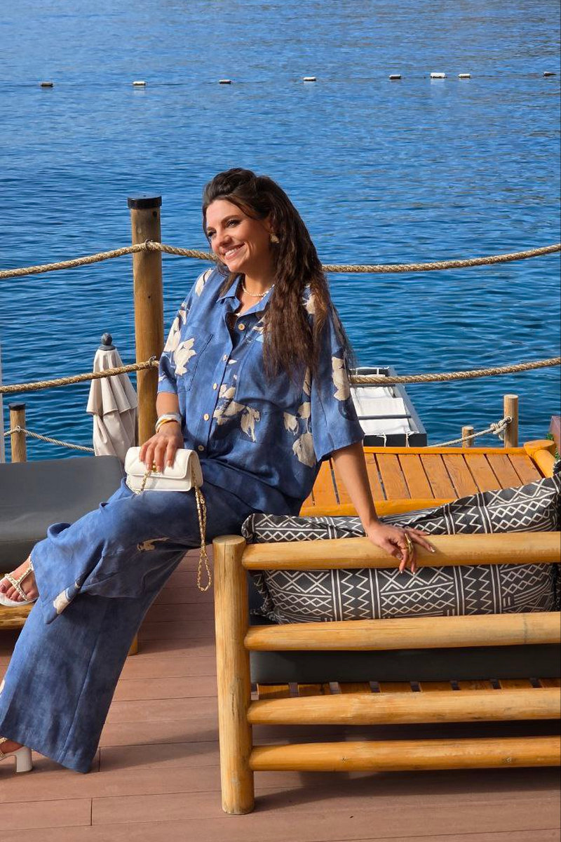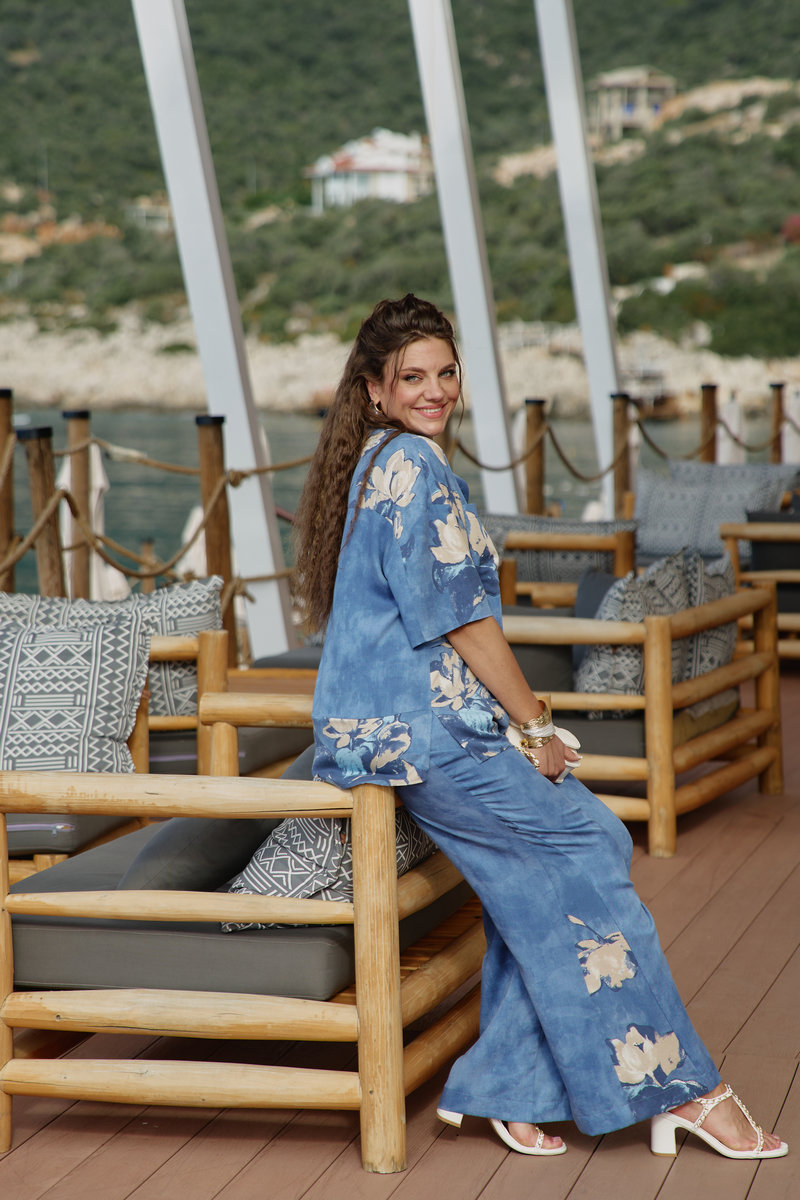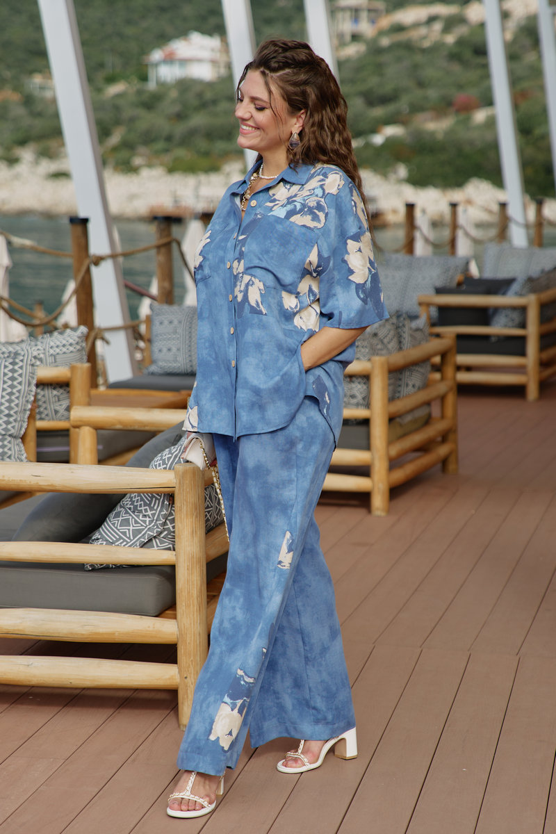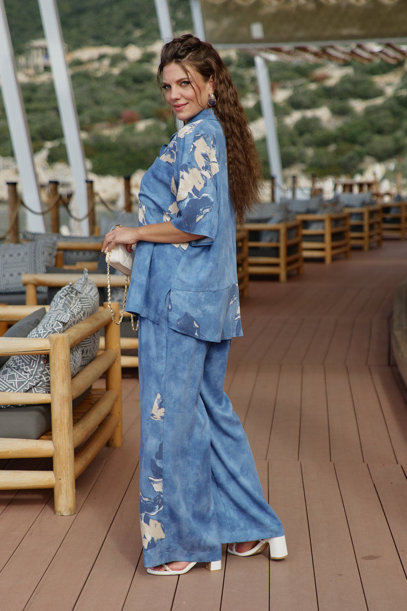 Костюм женский, двухпредметный, состоящий из блузки и брюк. Этот костюм — не про яркость, не про броскость, не про желание быть замеченным. Это про уверенность в себе, про понимание, что настоящая красота часто скрыта в деталях, это про комфорт каждый день. Костюм с идеальной посадкой подходит для образов как на каждый день, так и для особых случаев. Костюм выглядит сдержанно, почти монохромно, принт читается как тонкая деталь.