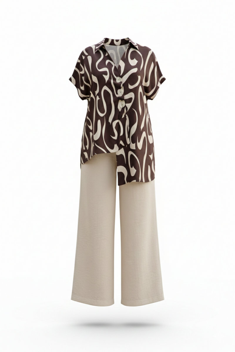 Брюки не обтягивают — они оформляют. Они создают вертикаль, которая: визуально вытягивает силуэт — делая его стройнее, балансируют с объёмом блузки — создавая гармонию, позволяют