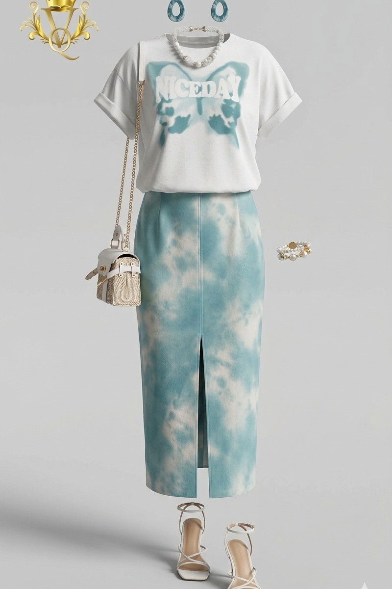 Этот комплект становится не просто одеждой, а настоящим выражением индивидуальности и стиля. Он подходит как для прогулок по городу, путешествий, так и для работы в офисе. Блуза прямого силуэта, с округлой формой горловины. Рукав спущенный, удлиненная линия плеча с притачной манжетой по низу. Спинка без особенностей. По переду блузы- декоративный элемент в виде дизайнерской печати. Юбка прямого силуэта длины «миди» с разрезом спереди. Пояс притачной с эластичной тесьмой-резинкой в бочках, что обеспечивает максимально комфортную посадку на любой тип фигуры, и декоративными шлёвками. Застёжка на тесьму молнию в среднем шве спинки и пуговицу в поясе юбки. По переду юбки функциональные карманы. Низ в юбке с декоративным эффектом «необработанных срезов». Юбка на подкладке. Блестящее напыление, добавляет комплекту особую изюминку. Каждое движение женщины, носящей этот наряд, отражает легкие искорки света, что придаёт комплекту особый шарм.