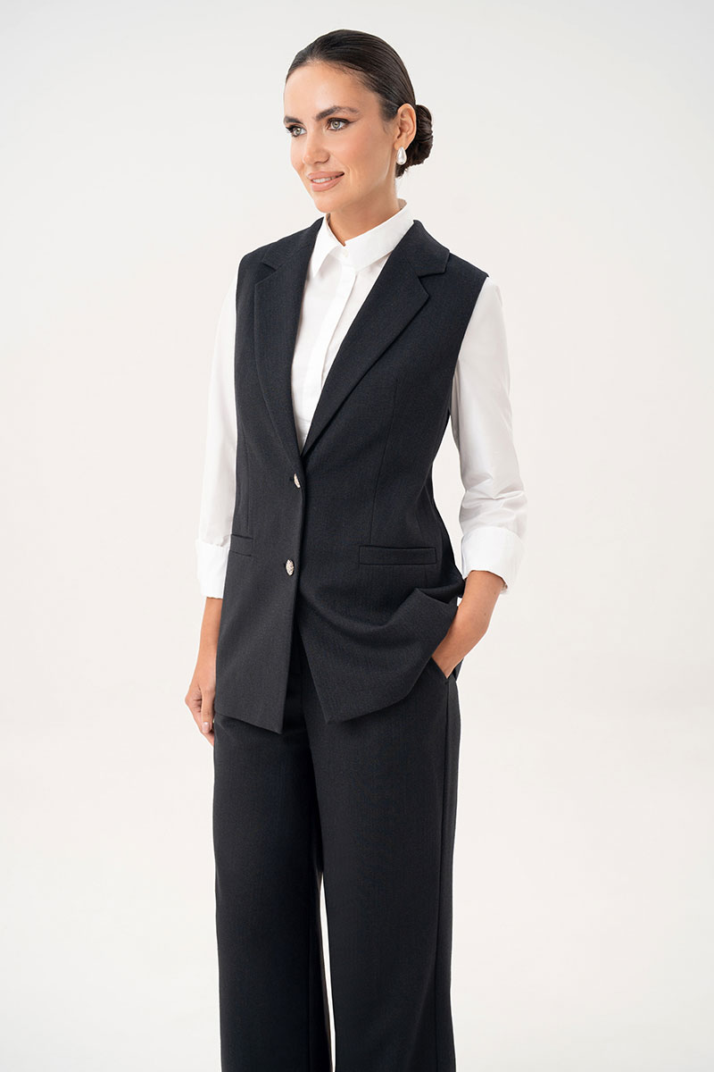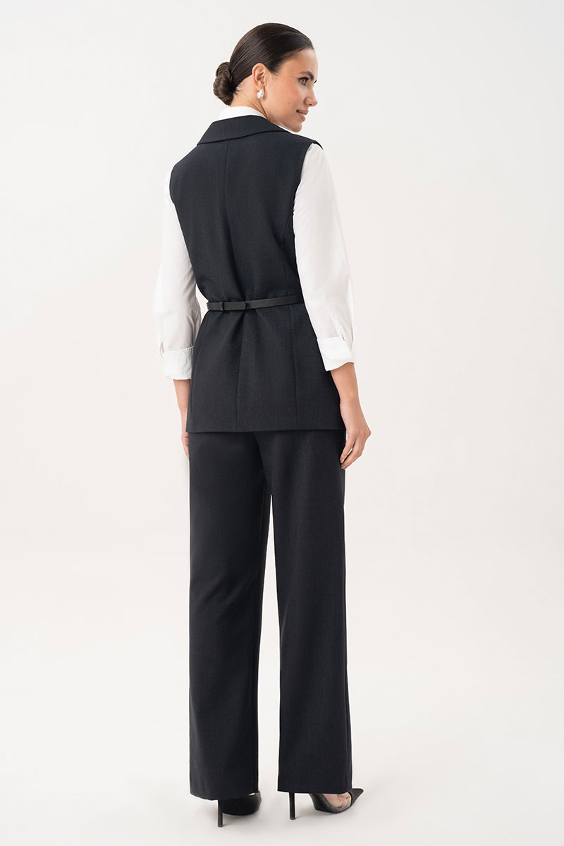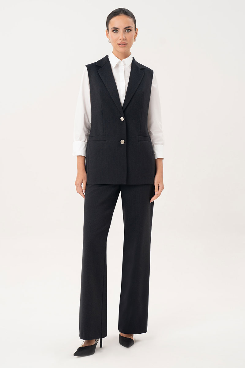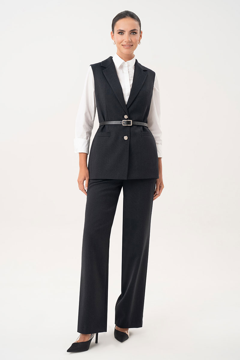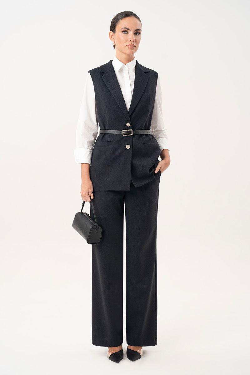 Женский брючный костюм с жилетом URS – это современное воплощение элегантности и делового стиля, которое идеально подойдёт для уверенных женщин, ценящих строгий силуэт и комфорт.