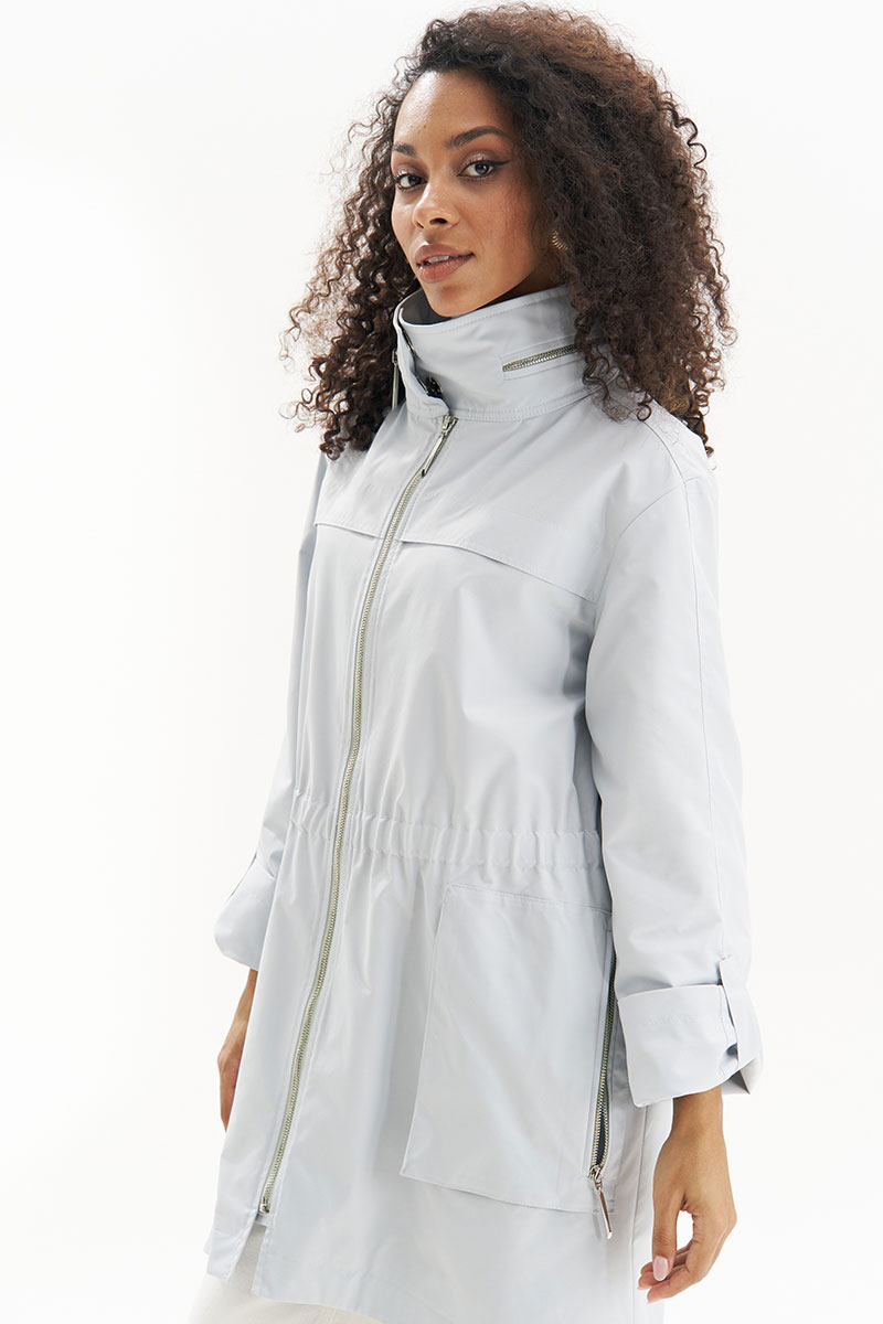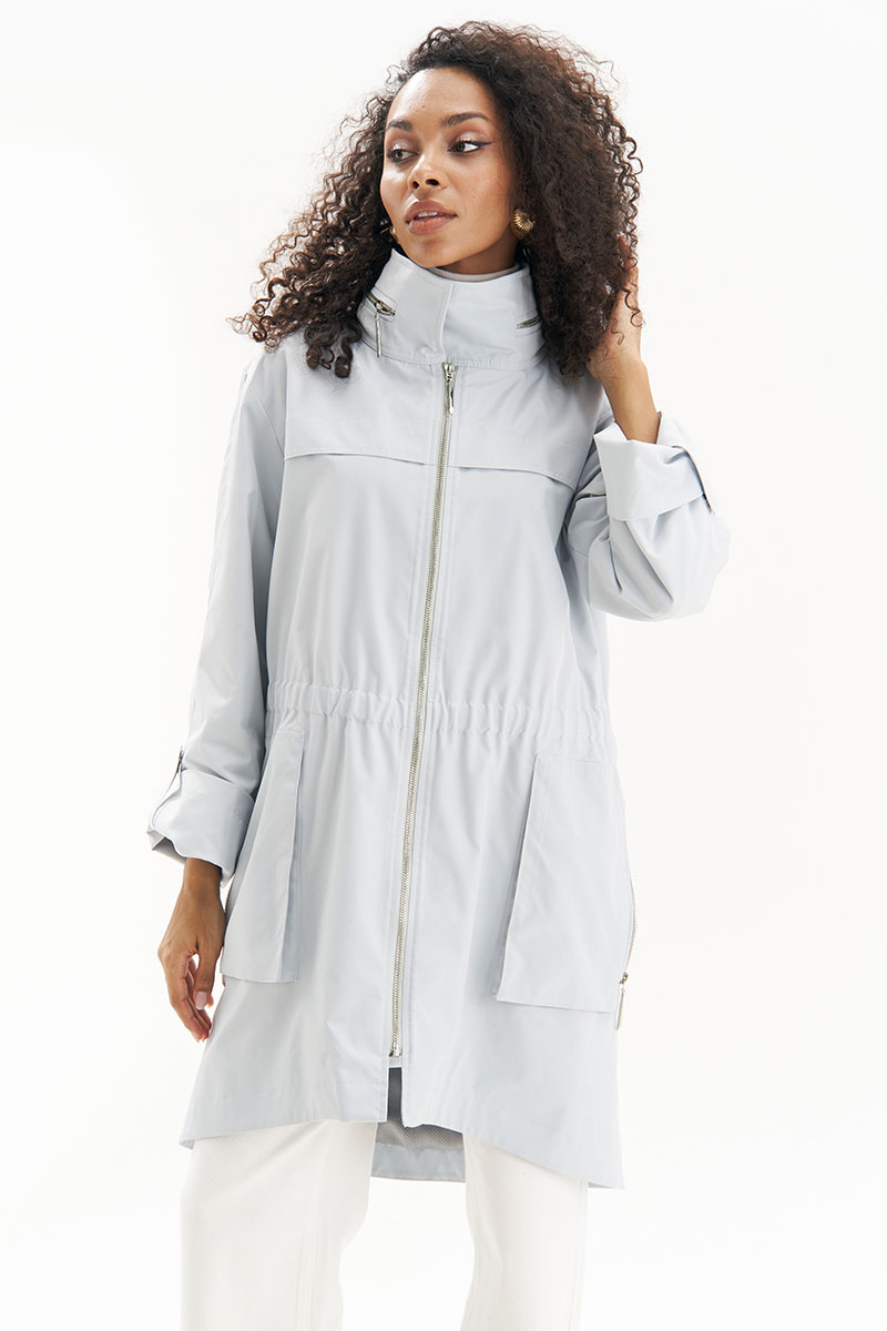 Эта легкая куртка – идеальный баланс между стилем и комфортом. Выполненная в универсальном светлом оттенке, она придает образу свежесть и элегантность, а свободный силуэт с утяжкой на талии подчеркивает фигуру, создавая женственный силуэт. Эта куртка станет стильной основой для любого весенне-осеннего гардероба!