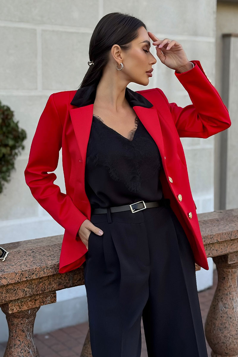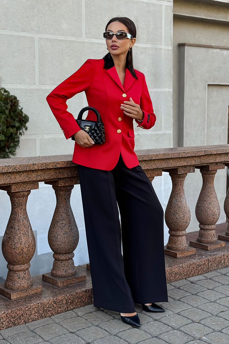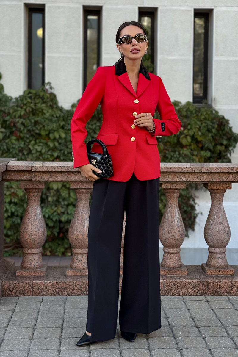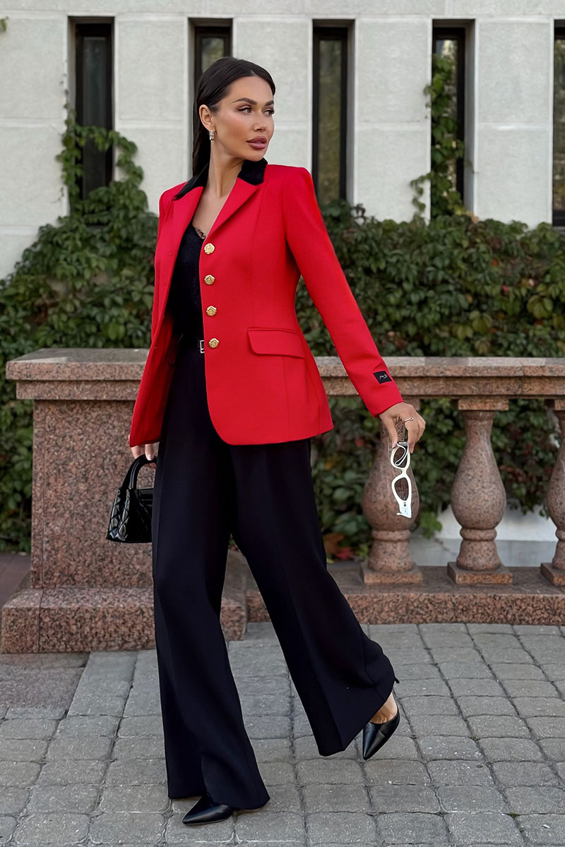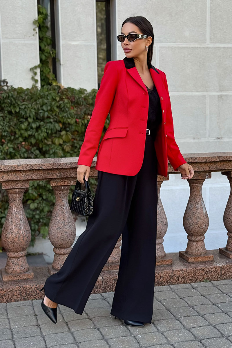 Женский красный жакет URS — воплощение элегантности и силы, классический элемент современного гардероба, который объединяет комфорт, женственность и уверенный деловой стиль. Этот приталенный жакет женский выполнен с идеальной посадкой по фигуре, подчеркивает линию талии и визуально вытягивает силуэт, создавая гармоничный и утончённый образ.