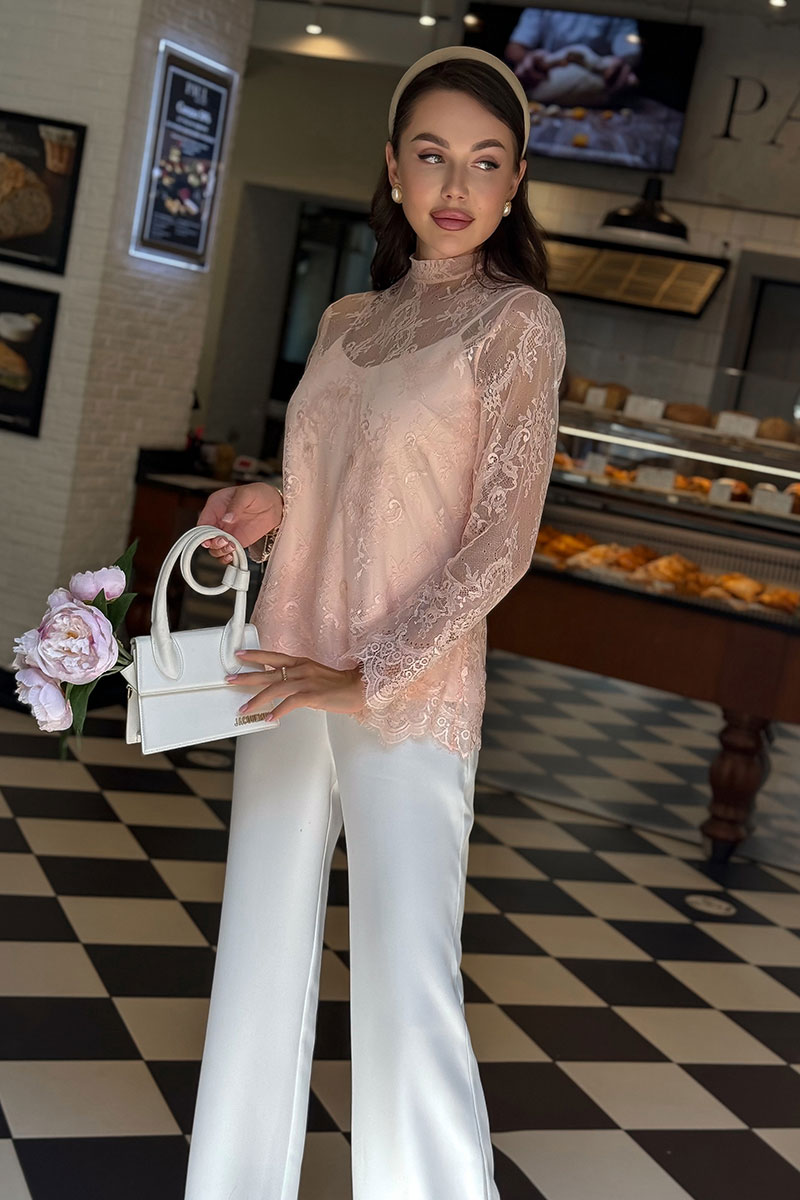 Блузка женская нарядная из гипюра с топом — комплект 2 в 1 для особых случаев