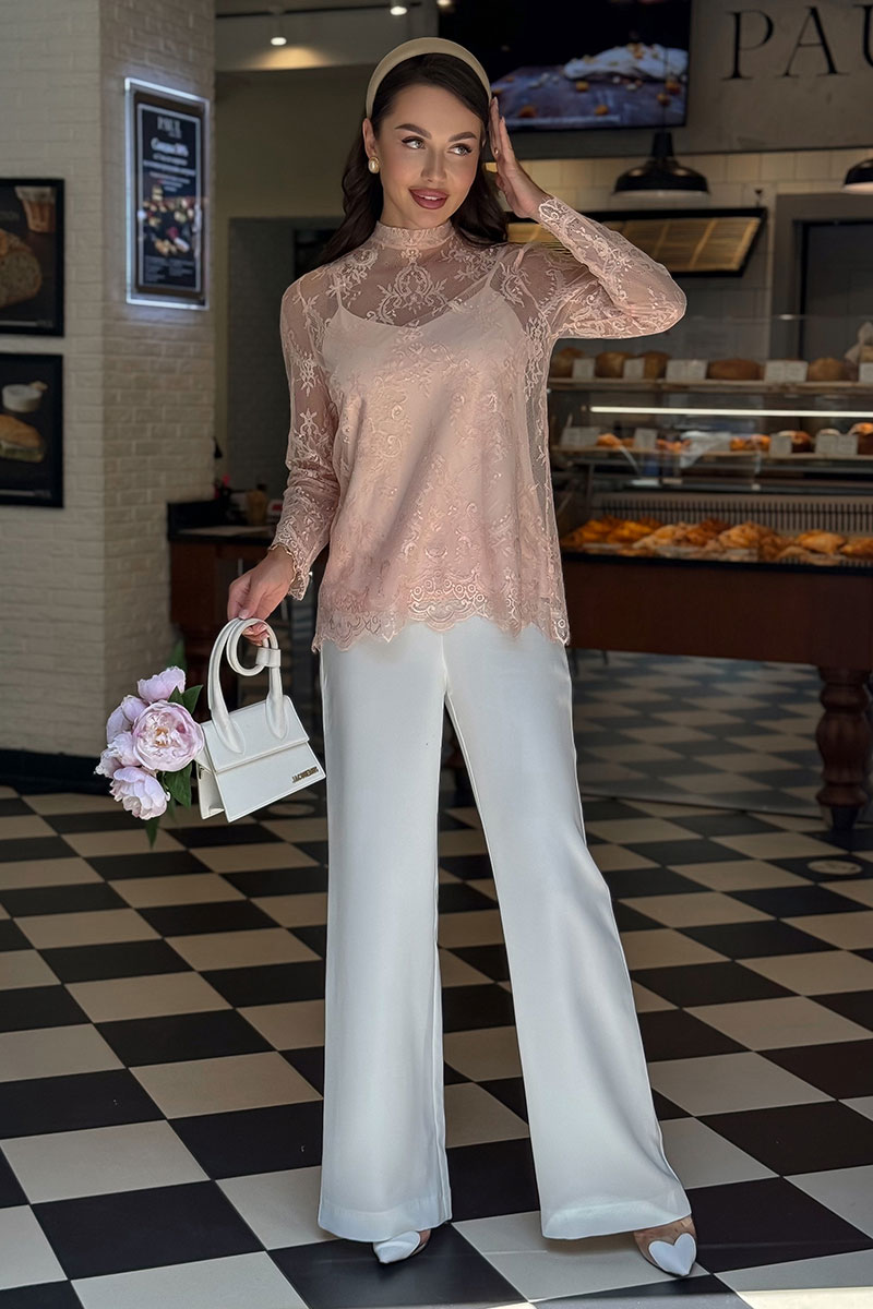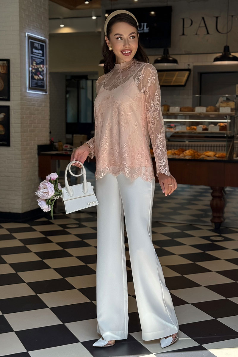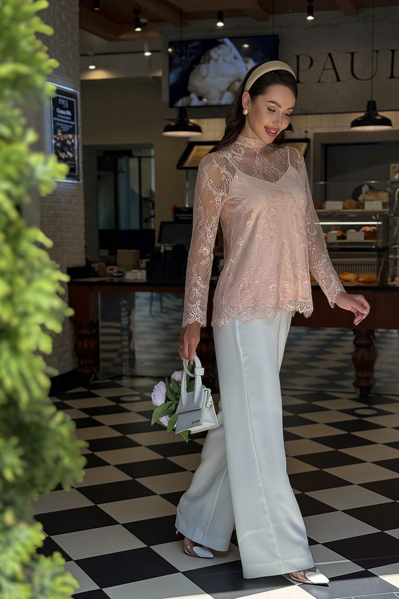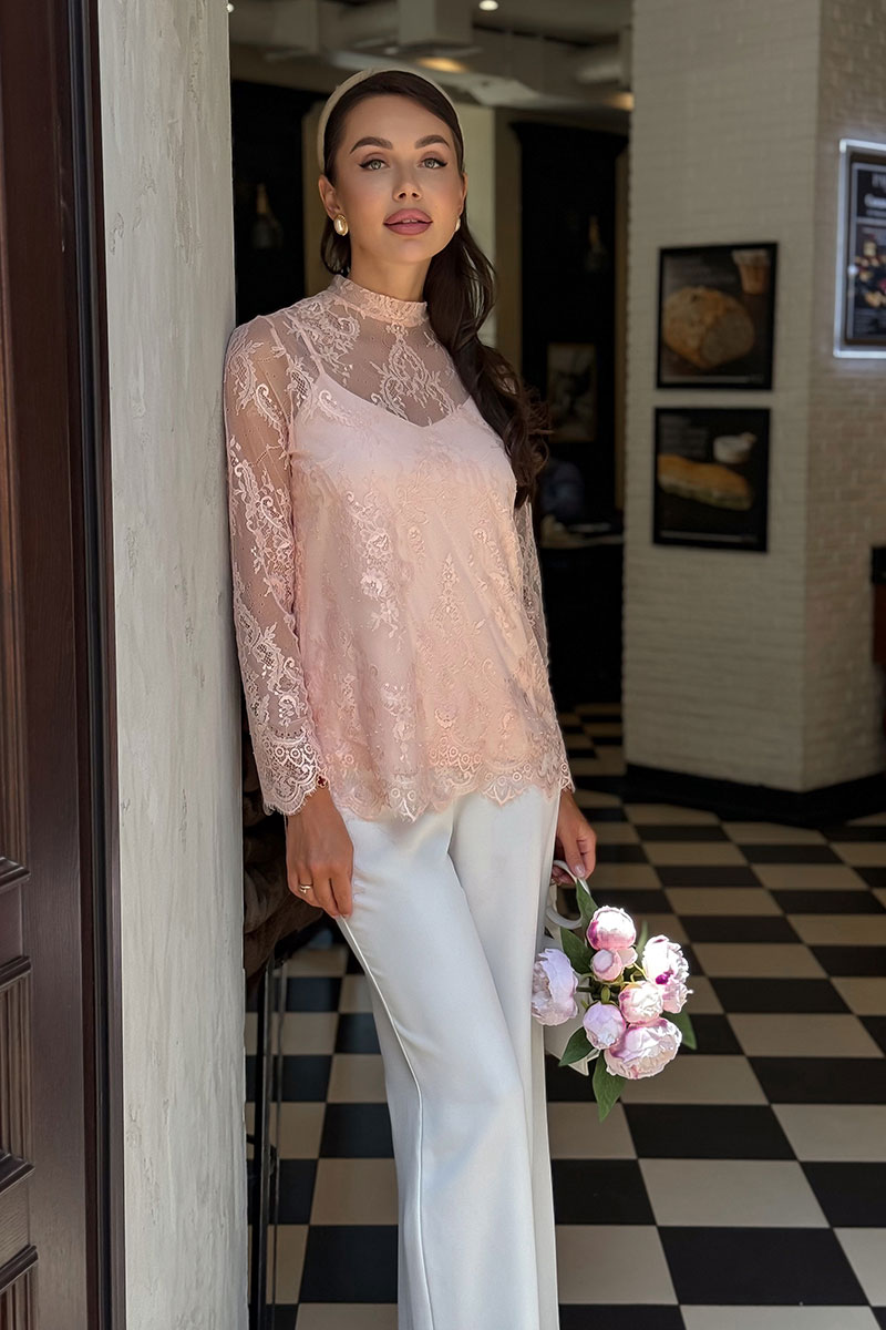 Эта нарядная женская блузка из нежного гипюра — идеальное решение для торжественного образа. Комплект женский 2-х предметный, состоящий из блузы и топа, предназначен как для нарядной,