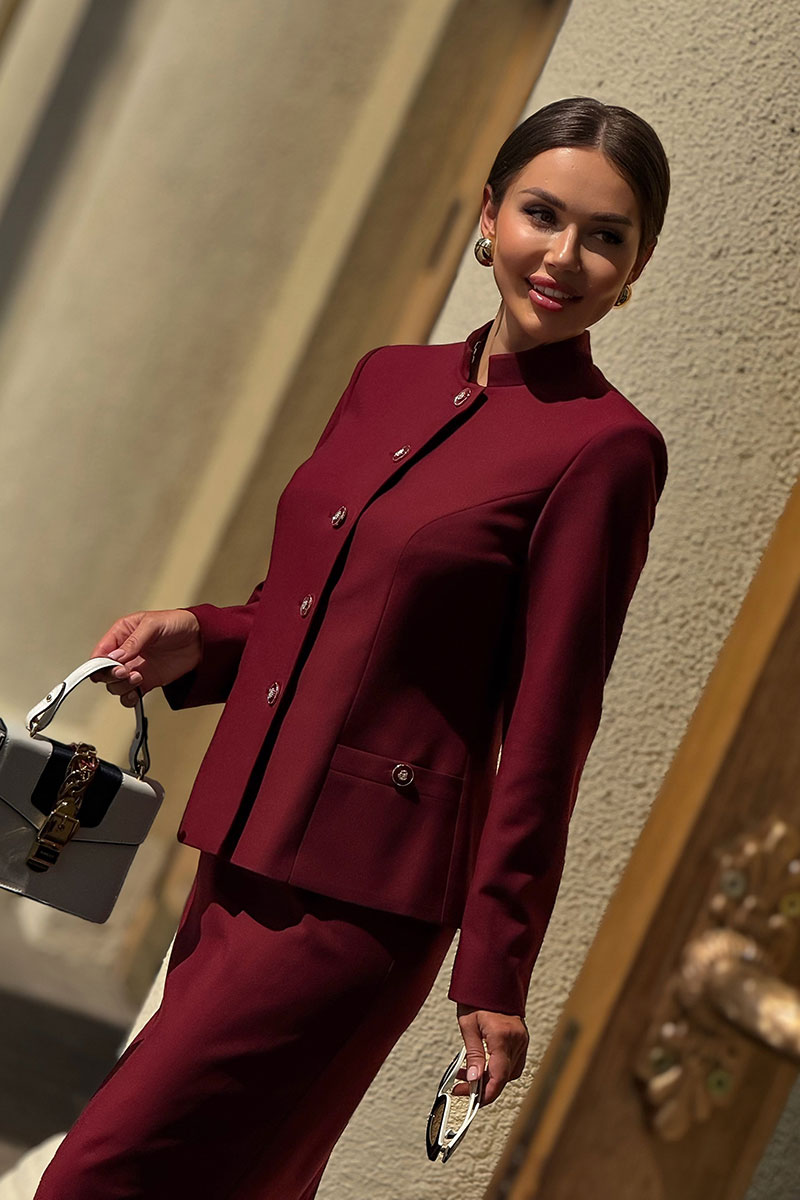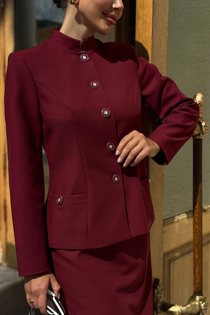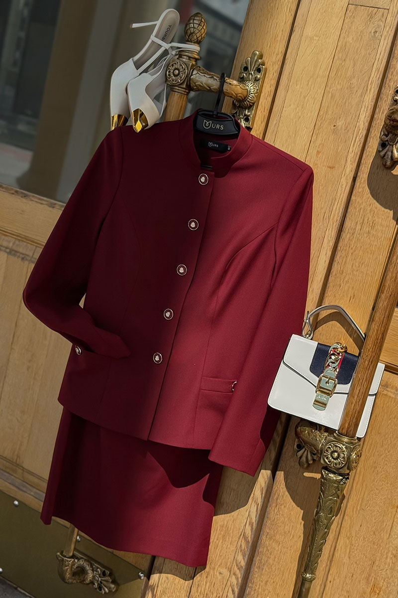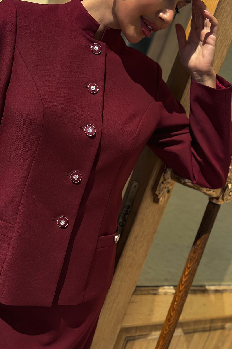 Женский костюм с юбкой бордового цвета от бренда URS – это воплощение элегантности, строгости и изысканности. Такой комплект создан для женщин, которые ценят деловой стиль,