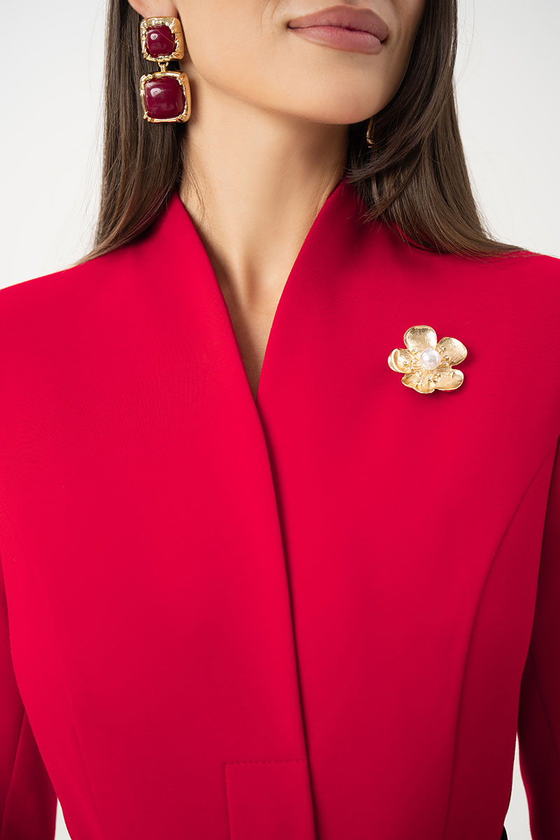 Жакет женский полуприлегающего силуэта, на подкладке, с центральной бортовой потайной застежкой на 2 петли и пуговицы (размер и цвет фурнитуры может незначительно отличаться от фото). Перед с рельефными швами.