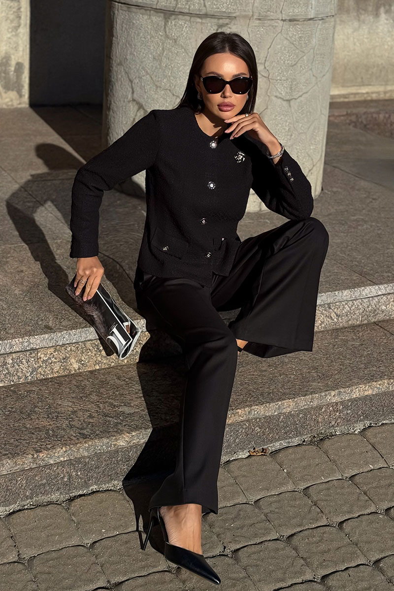 Элегантный твидовый жакет — это универсальная модель, созданная для женщин, которые ценят стиль, качество и комфорт. Классический силуэт, декоративные пуговицы и качественная ткань