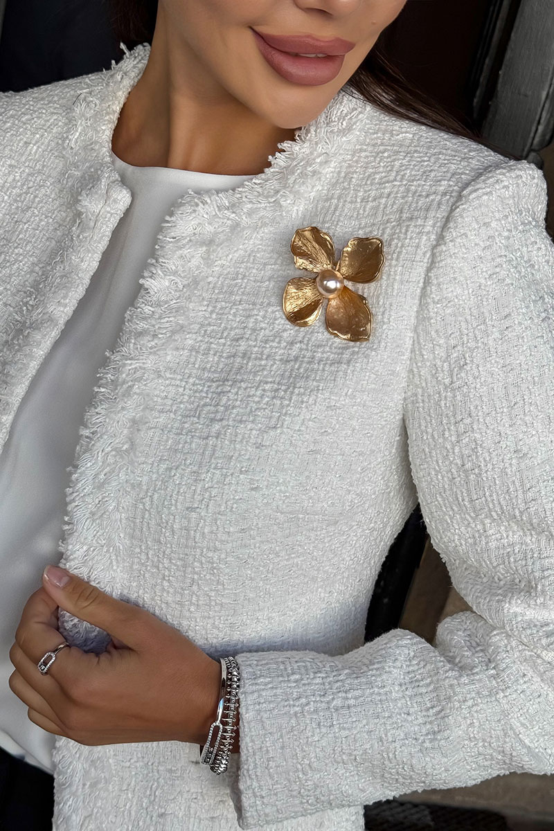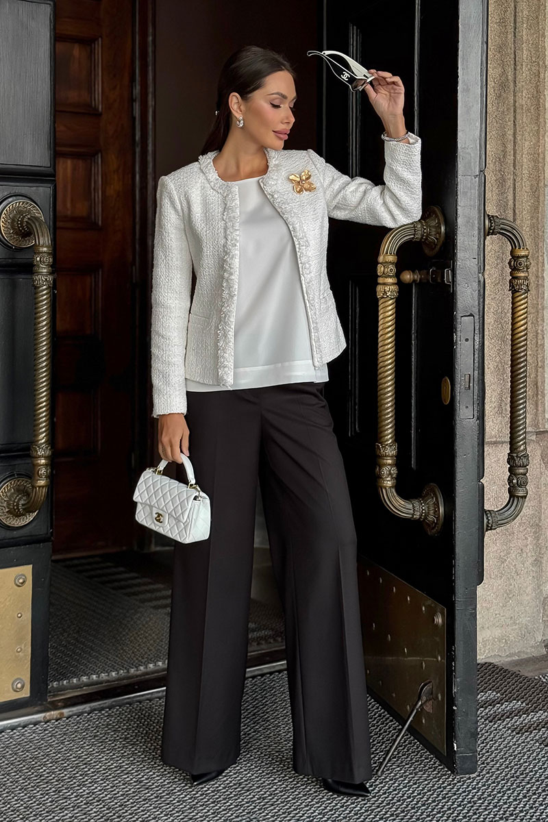 Белый твидовый жакет URS - это не просто элемент гардероба, а продуманная инвестиция в стиль, актуальный вне времени. Этот жакет создан для тех, кто выбирает классику, статус и